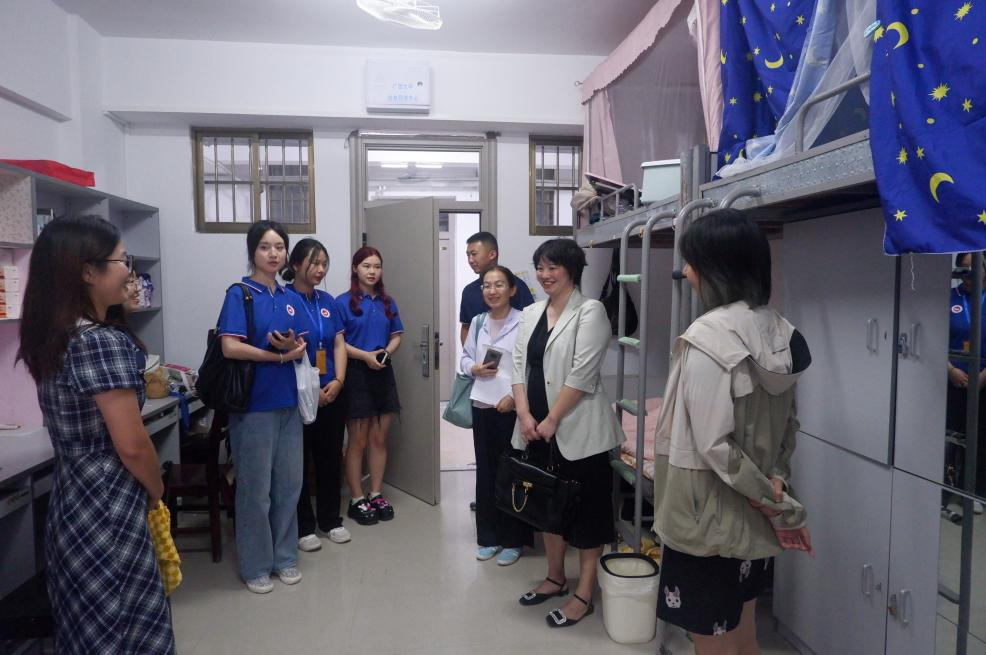 党委常务副书记罗诚,党委副书记、纪委书记陈卉娟,副院长梁权熙,副院长杨璞带队,与新生班主任、学生辅导员、学生干部一同到宿舍看望太陽城app