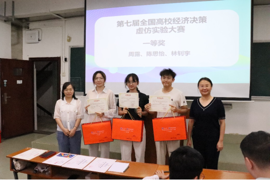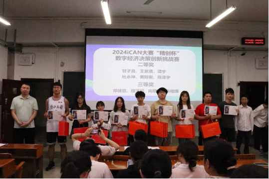 的大力支持下,今年经济学专业举办了第二届“经济新星”大赛,并组织同学参加了全国高校经济决策虚拟仿真实验大赛、2024iCAN大赛“精创杯”数字经济决策创新挑战赛。随着同学们创新创业意识的提高,各项竞赛的参赛人数再创新高,作品质量不断提高,比赛成绩显著提升。参会老师为获奖的同学进行了颁奖。