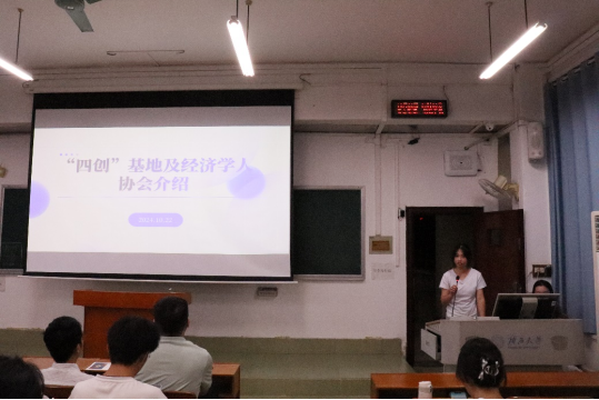 “四创”基地和三大协会的组织架构、主要组织赛事等方面介绍了“四创”基地以及经济学人协会的基本情况,并欢迎大家加入经济学人协会。
