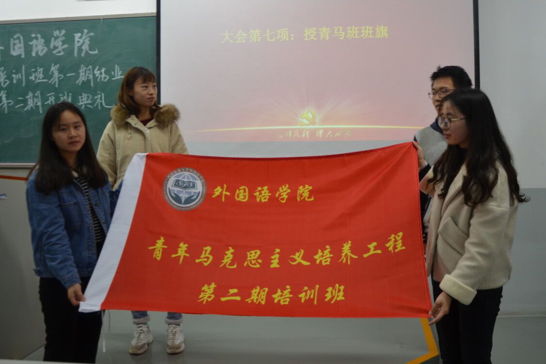 本网讯(审稿:王颖 供稿:饶芝玉)为提高学生骨干和广大青年团员的思想政治素质、政策理论水平,使其进一步坚定跟党走中国特色社会主义道路的信念,11月13日晚7点,太阳城App 在龙子湖校区繁塔楼C210教室举办了青年马克思主义培训班第一期结业暨第二期开班典礼。团委书记李沛出席本次开班典礼。