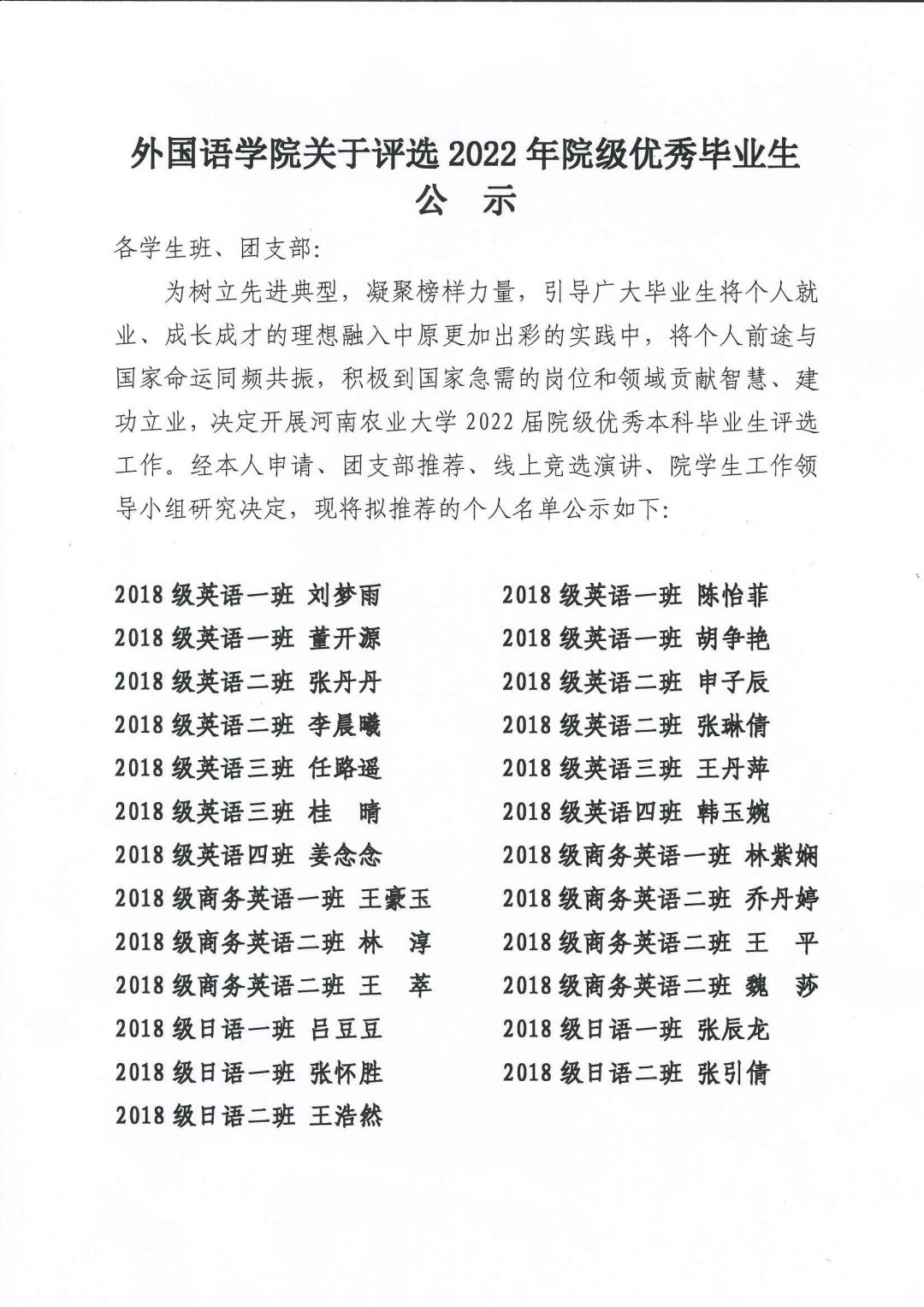太阳城App 关于评选2022年院级优秀毕业生公示