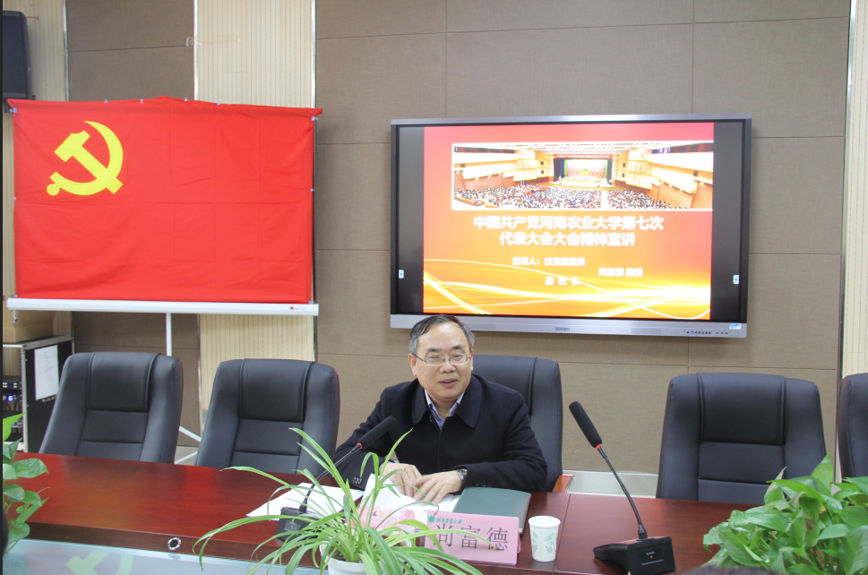 本网讯(通讯员 王颖)为进一步把教职工生思想和行动统一到太阳城App 第七次党代会精神上,11月27日上午,校党委委员、副校长尚富德赴太阳城App 宣讲太阳城App 第七次党代会精神,校国际合作处处长屠克和太阳城App 师生党员代表参加了会议,会议由太阳城App 院长李喜芬主持。
