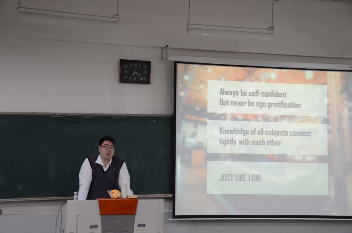讲座伊始,胡晨分别从教师、翻译、同声传译、外企职员这四个职业分析了目前商务英语专业的就业前景,他指出大家应找准自己的定位,提前做好未来规划。随后他为大家介绍了BEC考试的发展和现状,并分享了相关学习经验。他表示商务英语的学习不仅仅是单词课文的背诵,清晰准确的商务语言,外国人工作的方式方法、外国人的生活习惯等也是需要商务英语专业学生必须学习和掌握的内容。同时就BEC考试性质、内容及通过标准,他对听、说、读、写这四个方面做了全面透彻的分析讲解,进一步强调了综合能力的重要性。最后,他指出了目前学生在商务英语的学习中普遍存在,听力水平较低、专业性不强、翻译逻辑不够严密等问题,他鼓励学生坚持英语训练,及时查缺补漏,不断提高自身综合能力,同时预祝大家凭借自身努力通过BEC考试,成为在外贸、文化、教育、翻译等方面的人才。