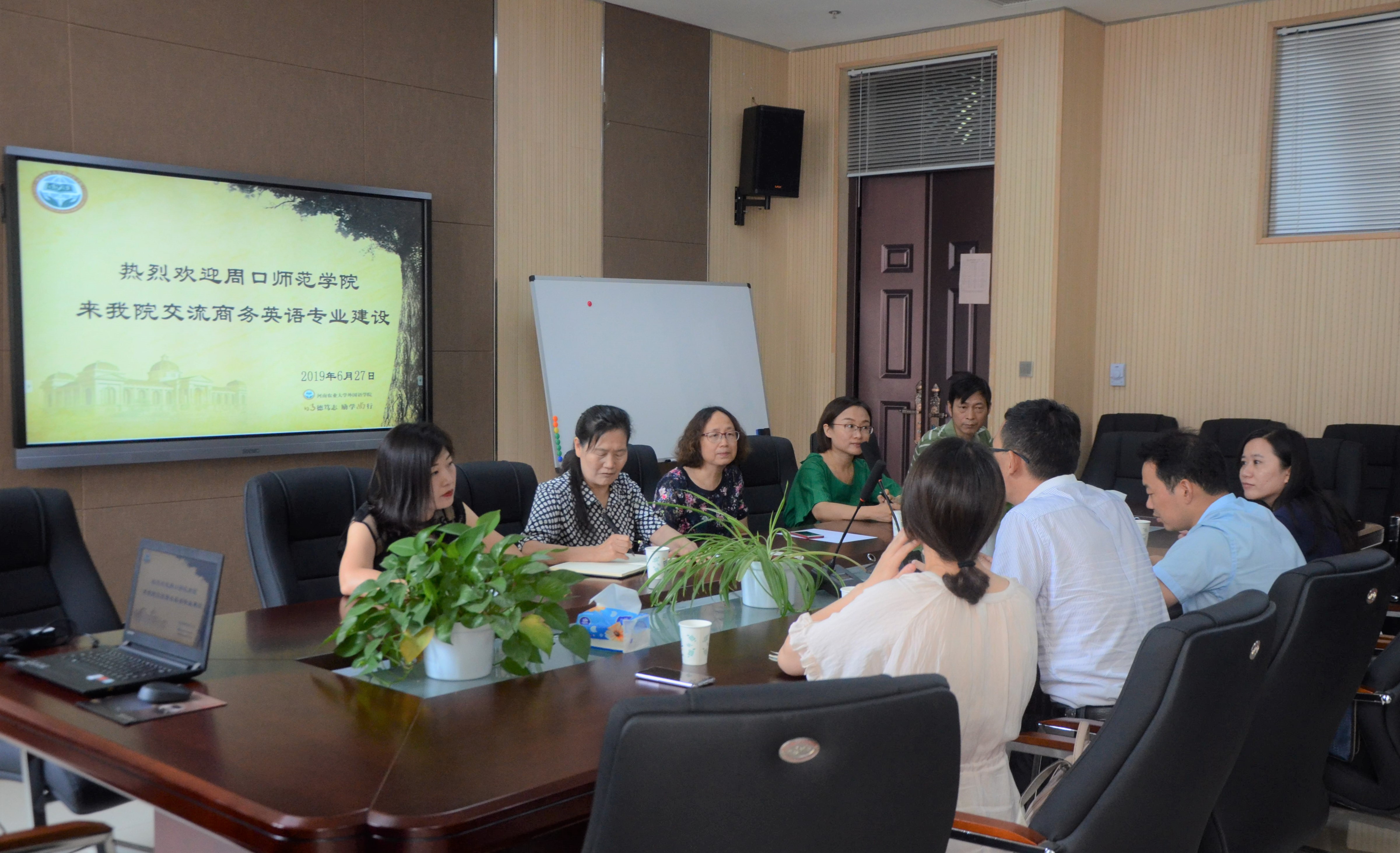 一行的到来表示了热烈欢迎。随后,双方简要介绍各自的办学历程、办学特色、应用型人才培养模式改革以及近年来商务英语专业的发展情况。在聆听彼此珍贵办学经验之后,双方围绕师资力量的培养、商务英语课堂教学、学生语言表达能力的提升等方面展开了热烈的探讨。赵凤玲主任提出申报商务英语专业须按照国家标准来设置课程和学分,才能达到国家认定标准。关于师资力量的培养,赵主任建议可同其它太阳城App