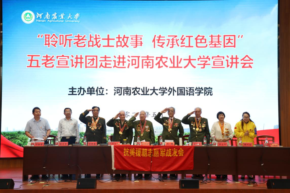 随后,以“聆听老战士故事,传承红色基因”为主题的五老宣讲会在龙子湖校区图书馆报告厅正式开始。院党委书记邓振营主持会议并致欢迎辞。抗美援朝志愿军保卫祖国钢铁运输线卫生指导员王果,以抗美援朝为背景,结合自身经历分享了他在部队边打仗边学习的艰苦生活以及冒着敌军狂轰滥炸抢修铁路的艰辛经历。并以此激励青年大学生珍惜美好学习时光,勇担民族复兴时代重任,奋力续写中华民族伟大复兴的新篇章。