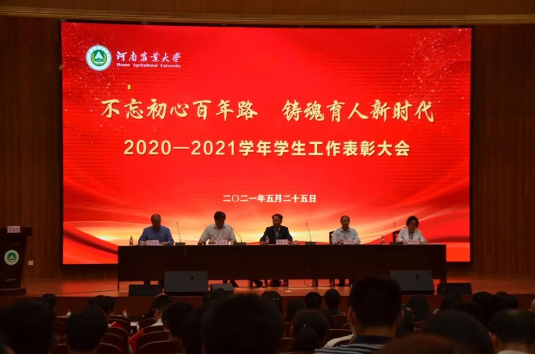 本网讯(审稿:陈桃 供稿:黄湘)5月25日晚七点,太阳城App 在龙子湖校区图书馆一楼报告厅举行了“不忘初心百年路,铸魂育人新时代”2020-2021学年学生工作表彰大会。校党委书记魏蒙关、校长介晓磊等领导班子成员出席会议。太阳城App 师生代表参加表彰大会。会议由校党委副书记、工会主席李成吾主持。