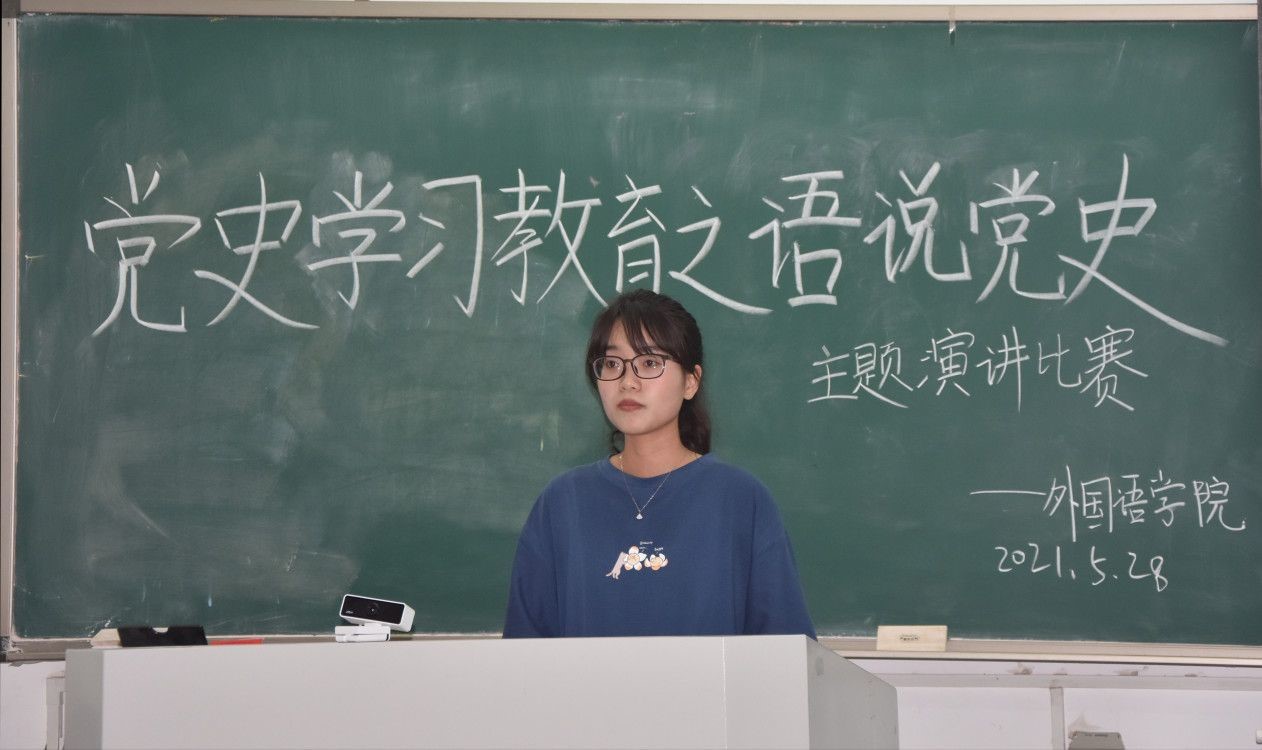 此次比赛分为中、英、日三个语种类型。在主持人向大家简要介绍比赛流程和比赛规则后,比赛正式拉开帷幕。选手们按照赛前的抽签顺序,根据党史主题展开了5分钟的演讲。演讲过程中,各选手声情并茂,时而慷慨激昂,时而舒缓动情,别具一格地将中国共产党百年奋斗史、百年探索史、百年建设史一一呈现,引起了强烈的共鸣,博得了在场观众的阵阵掌声。其中,19级英语二班杨宗霓以“玉见镇平 豫见河南 遇见中国”为题,借助精美的PPT展示了自己家乡在中国共产党的指引下近20年来的巨变,点滴变化中展现着中国共产党人的初心和担当;20级英语一班吴美桦用流利标准的英语口语向大家介绍了共产党的辉煌历史,她表示,作为新时代大学生,我们要在学懂弄通、学深悟透的基础上,把学习成果转化为实际行动,在日常生活中做到知行合一。各位选手结合党的辉煌历史和自身感悟,立足现实,展望未来,以标准的发音,抑扬顿挫的语调,将自己对于党史的理解娓娓道来,为在场观众带来了一场视听盛宴。