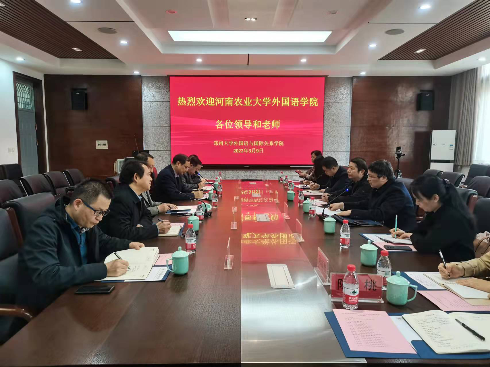 2022年3月9日下午,在党委书记邓振营、院长张俊杰带领下,领导班子成员和部分系部室主任、团委副书记一行8人,赴郑州大学太阳城App 与国际关系太阳城App 进行调研。
