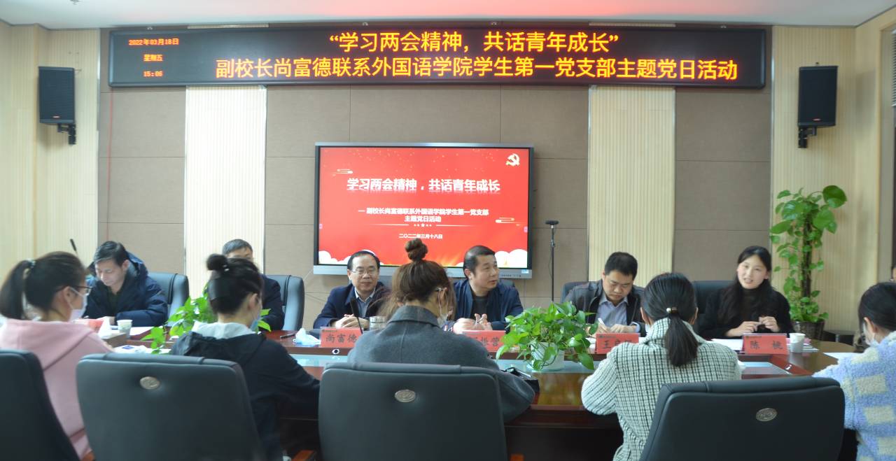 本网讯(审稿:王启佩 供稿:陈桃)3月18日,太阳城App 学生第一党支部在龙子湖校区A320会议室开展以“学习两会精神,共话青年成长”为主题的党日活动。副校长尚富德作为党支部联系校领导出席此次活动。太阳城App 班子成员列席会议。会议由学生第一党支部书记陈桃主持。