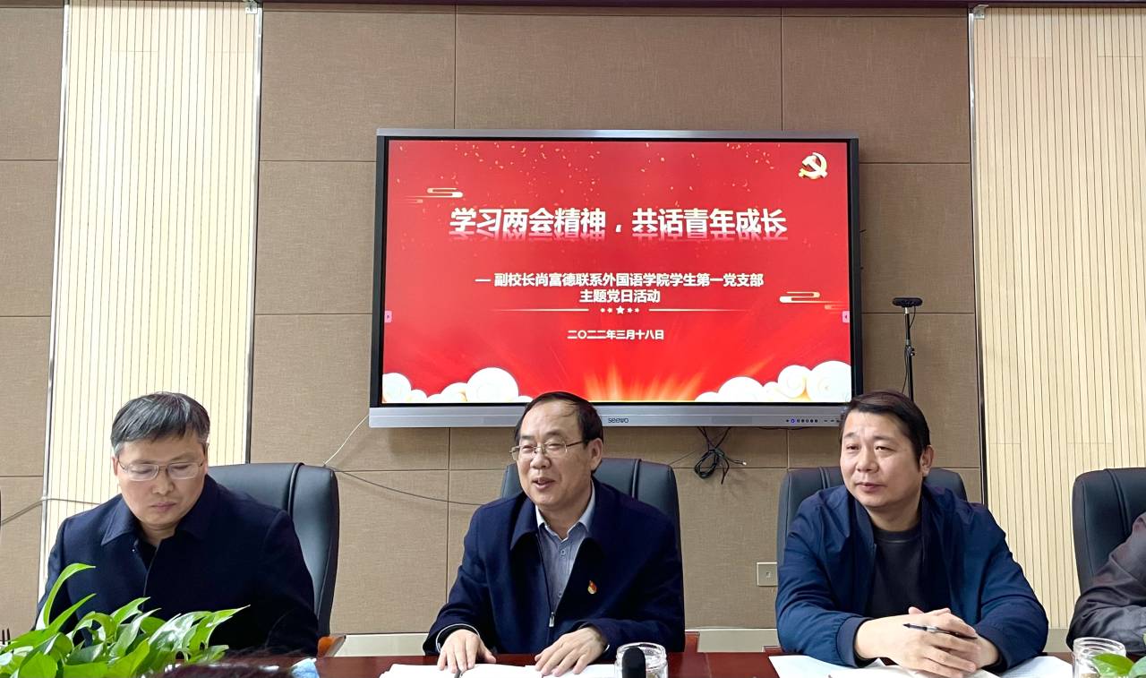 期间,尚富德通过领学习近平总书记有关青年成长的重要论述、分享两会学习感悟、与与会师生座谈交流等方式把脉问诊支部学习效果,他指出,中华民族伟大复兴的中国梦必将在青年一代的接续奋斗中实现,并以此寄语请青年学生党员:一要志存高远,忠于党,忠于祖国,努力做有远大理想和坚定信念的爱国者;二要敢于担当,勇于奋斗,努力做新时代具有责任意识和创新精神的建设者;三要勤奋学习,锤炼身心,努力做新时代有过硬本领和高尚品格的接班人。