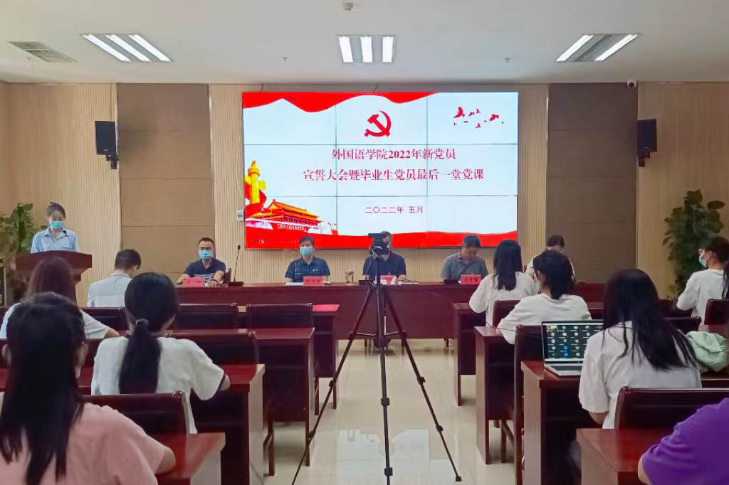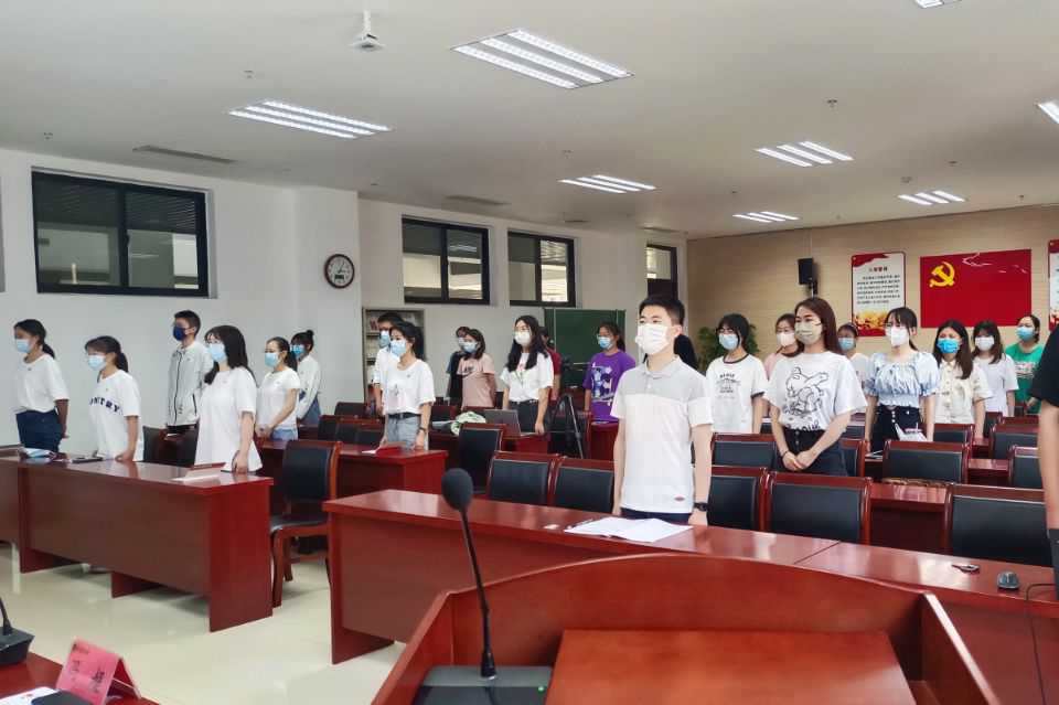 本网讯(审稿:陈桃 供稿:张仪婷)为进一步提高党员党性修养,充分发挥学生党员的先锋模范作用,引导学生党员坚定理想信念,5月30日,下午三点,太阳城App 于龙子湖校区繁塔楼A座324会议室举办新发展党员宣誓大会暨毕业生党员最后一堂党课活动。院长张俊杰、院党委副书记王启佩、副院长张卫东、院团委副书记陈桃、冯超携毕业生党员以及新发展党员参加此次会议。