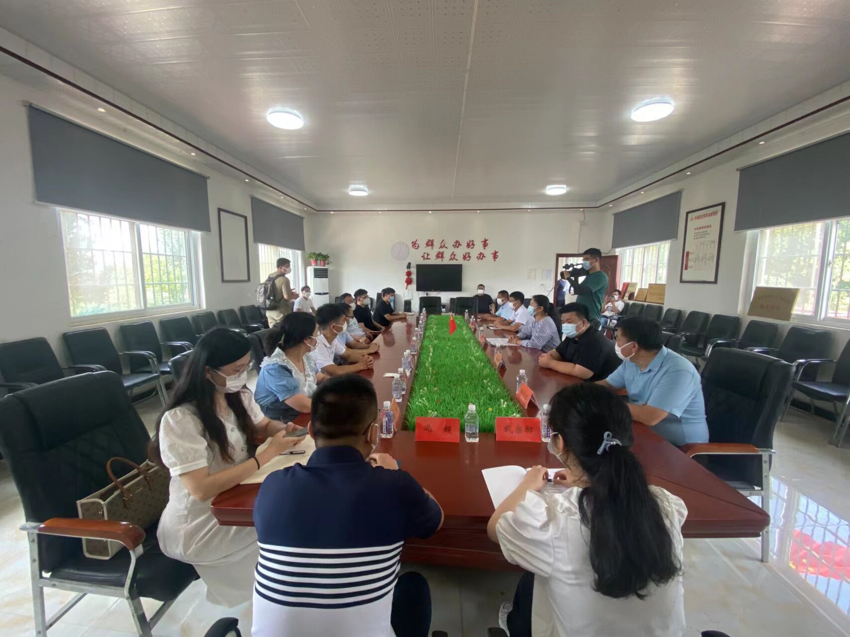 8月19日上午,青年志愿服务团抵达潘店胡村,魏玮对太阳城App 长期以来对韩寺镇的关心支持表示感谢,对各位博士到潘店胡村助力乡村振兴表示热烈欢迎。随后双方围绕共建项目开展座谈交流。