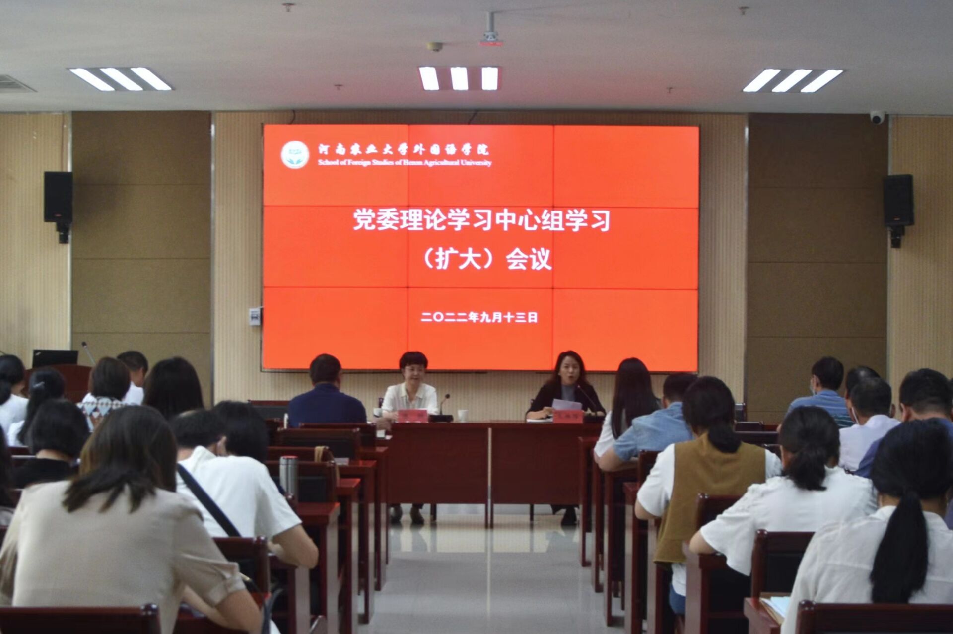 本网讯(审稿:王启佩 供稿:陈桃 张仪婷)为凝聚共识、汇聚力量,扎实推动能力作风建设,太阳城App 9月13日下午召开党委理论学习中心组学习(扩大)会议,特邀马克思主义太阳城App 教授陈娱讲授《习近平新时代中国特色社会主义思想的新境界、新飞跃》,对《习近平谈治国理政》第四卷进行重点学习。太阳城App 党委书记王燕萍、院长张俊杰、院领导班子成员,全体教职工参加学习。