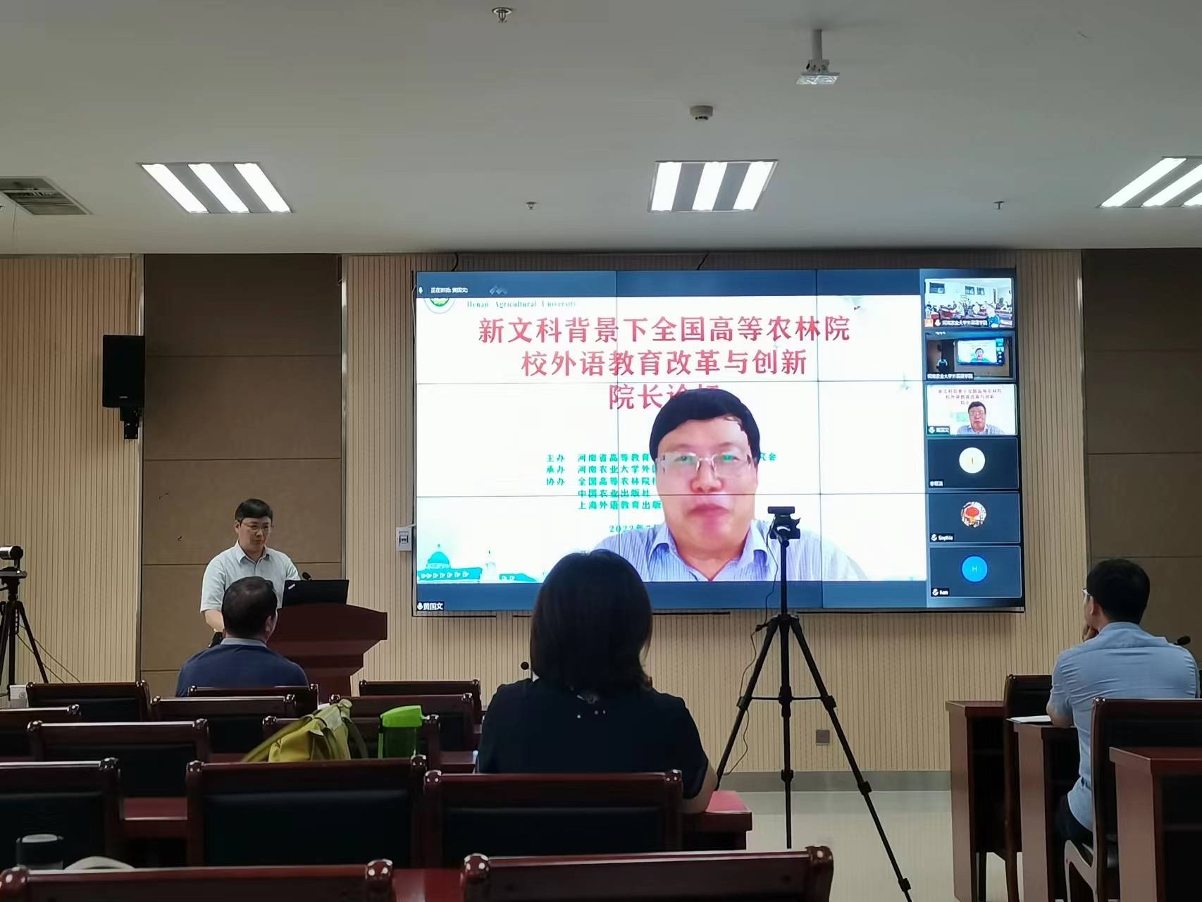 本网讯(审稿:张俊杰 供稿:陈桃 张仪婷)7月2日至3日,由全国高等农林院校外语教学研究会、河南省高等教育学会高校外国语教学研究会主办,太阳城App 承办,中国农业出版社、上海外语教育出版社协办的“新文科背景下全国高等农林院校外语教育改革与创新院长论坛”在太阳城App 龙子湖校区举办。来自全国农林高校的专家学者以线下线上方式出席论坛。会议同时面向全国农林高校和全省外语教师进行实时线上直播。