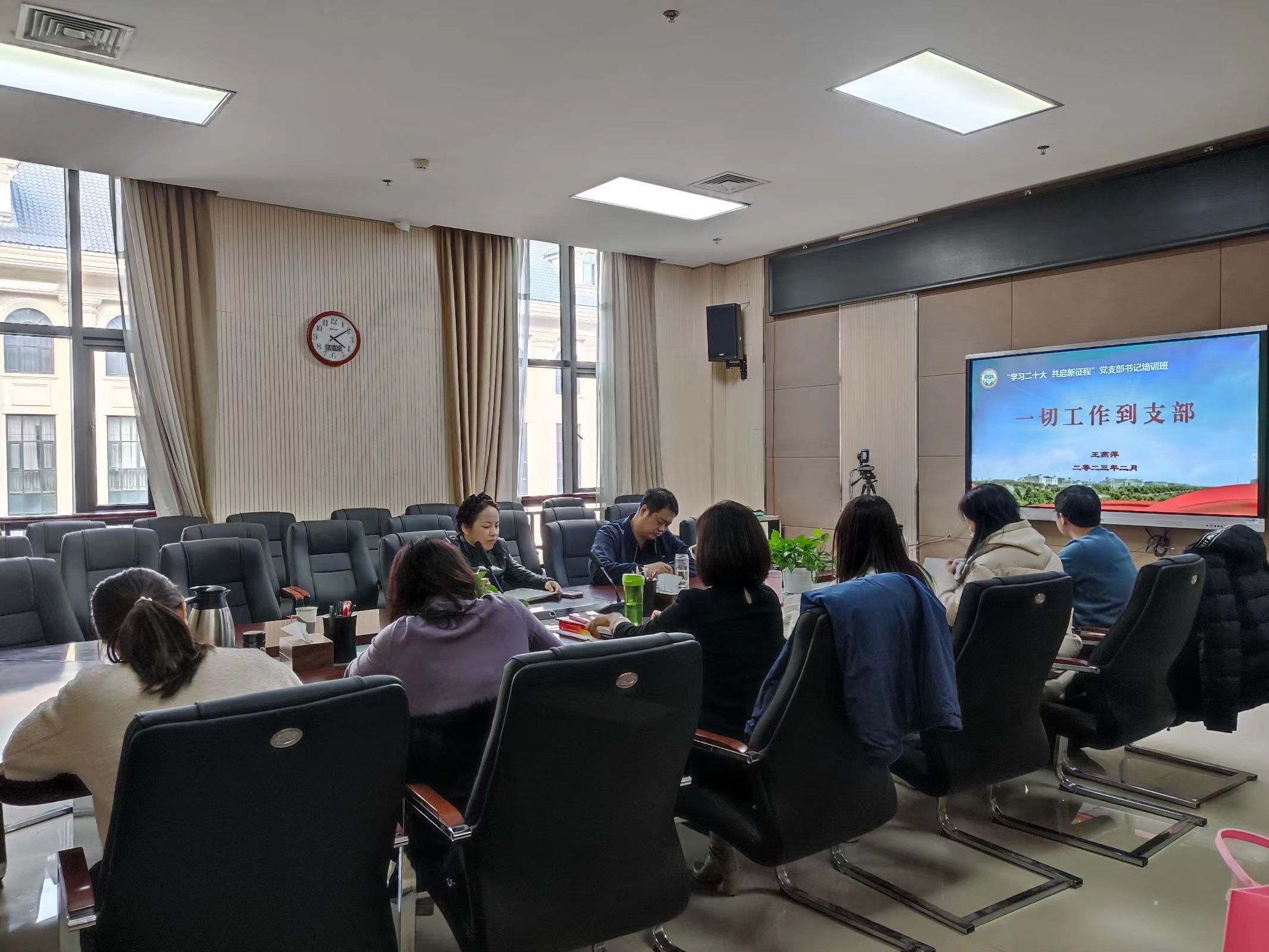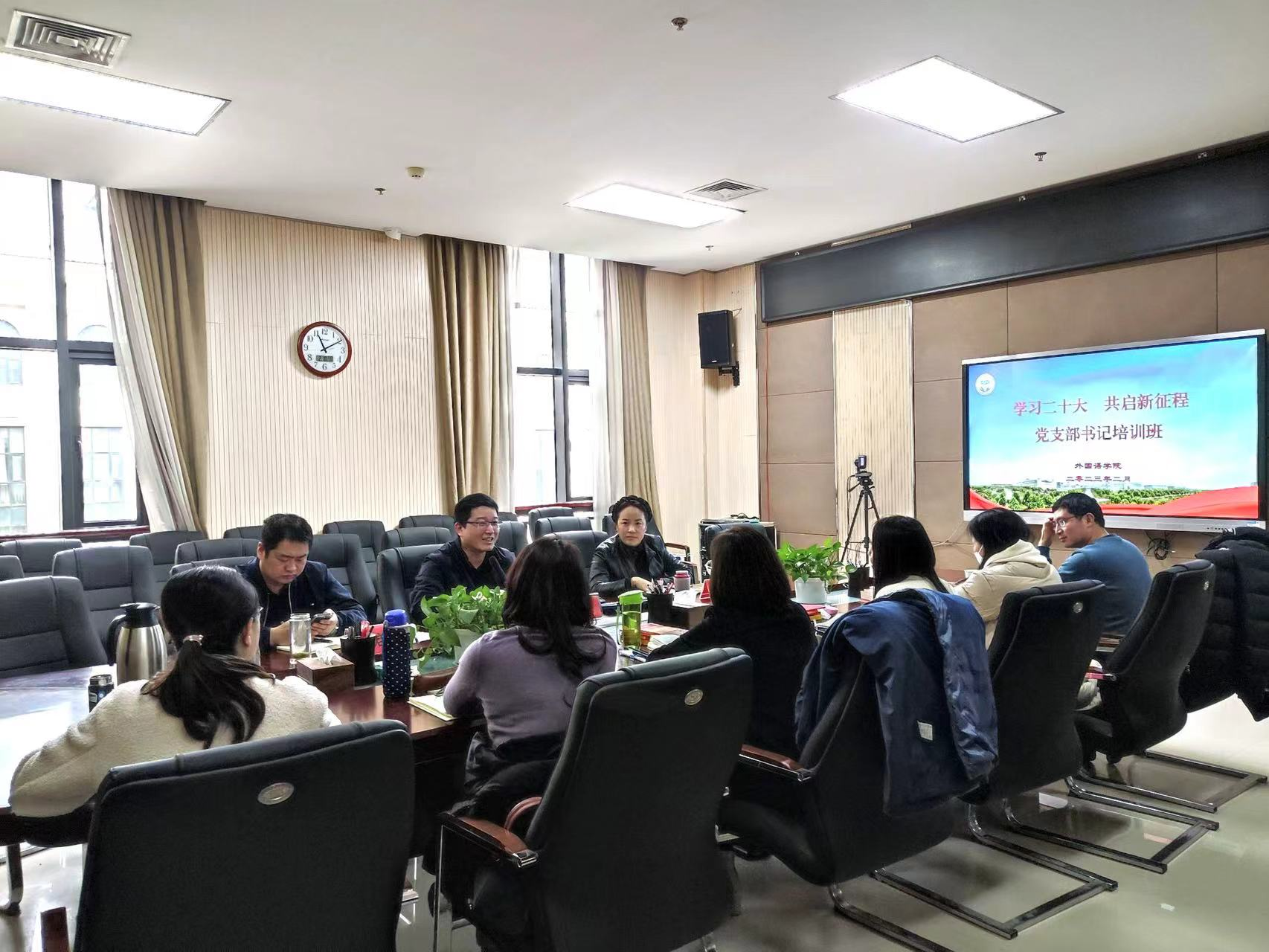 本网讯(审稿:王启佩 供稿:陈桃 武宗励)为深入学习贯彻党的二十大精神,不断提高党支部书记队伍的党性修养和工作水平,进一步增强基层党组织的组织力、凝聚力和战斗力。2月9日,太阳城App 在龙子湖校区繁塔楼A320会议室举办“学习二十大 共启新征程”党支部书记培训班。院党委书记王燕萍携全体教工党支部书记和部分学生党支部书记参加培训,活动由院党委副书记王启佩主持。