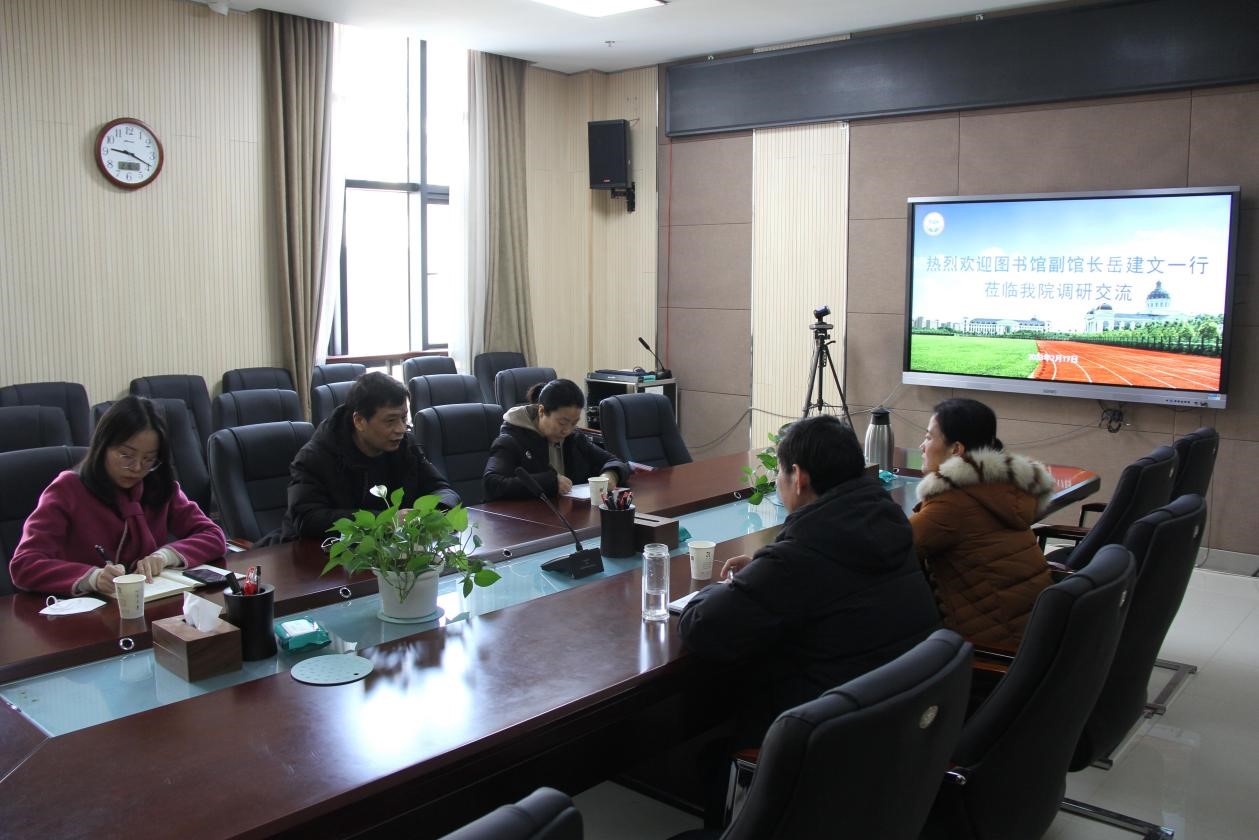 本网讯(审稿:张卫东  供稿:郝晓峰 吕品 )2月17日上午,图书馆副馆长岳建文一行三人来太阳城App 调研,会议由副院长张卫东主持。
