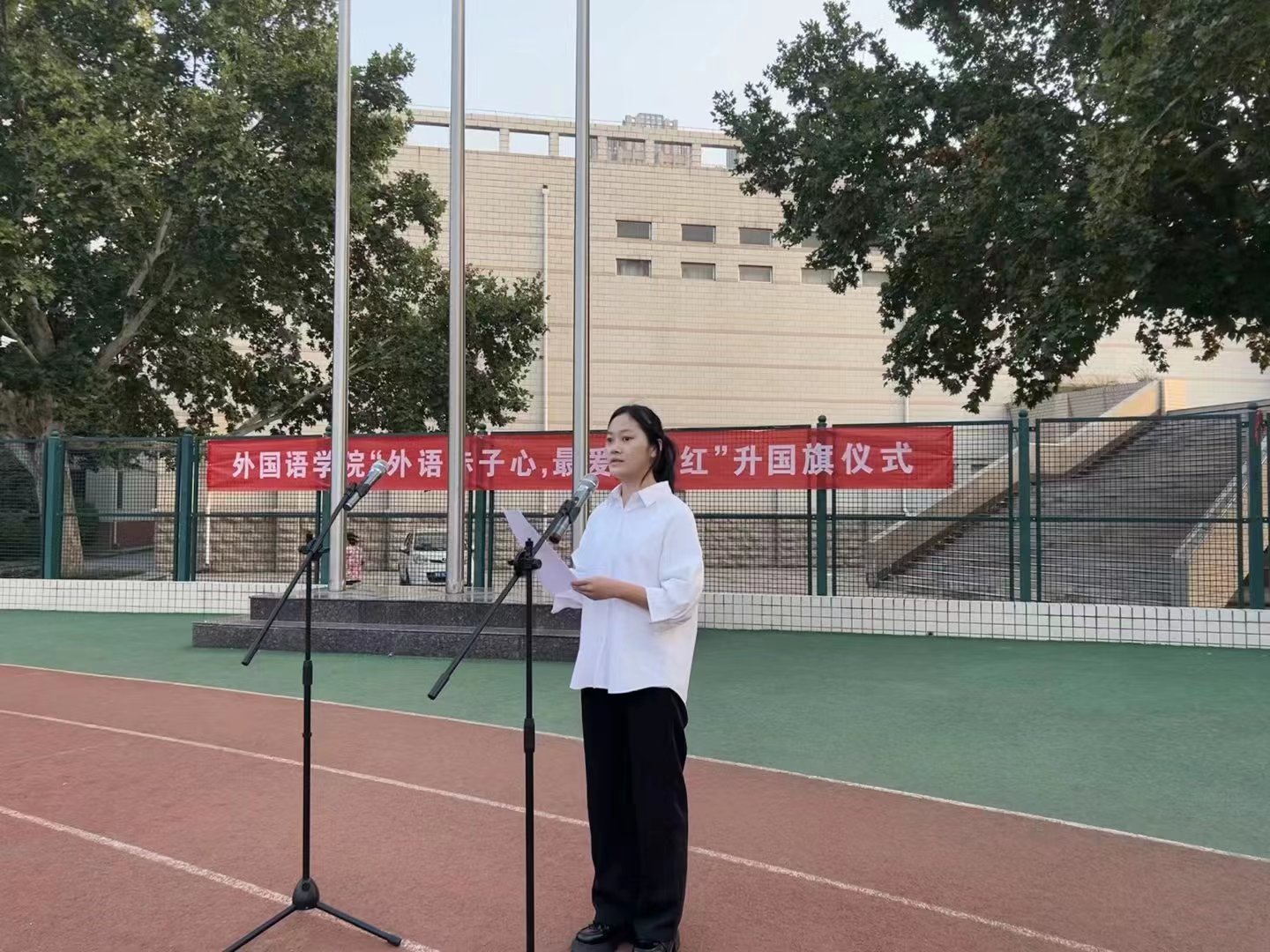 在文化路校区举行“外语赤子心,最美中国红”升国旗仪式。院党委书记王燕萍、院长张俊杰携院领导班子出席活动,教师代表及2023级全体新生参加本次升旗仪式,升旗仪式由院长张俊杰主持。