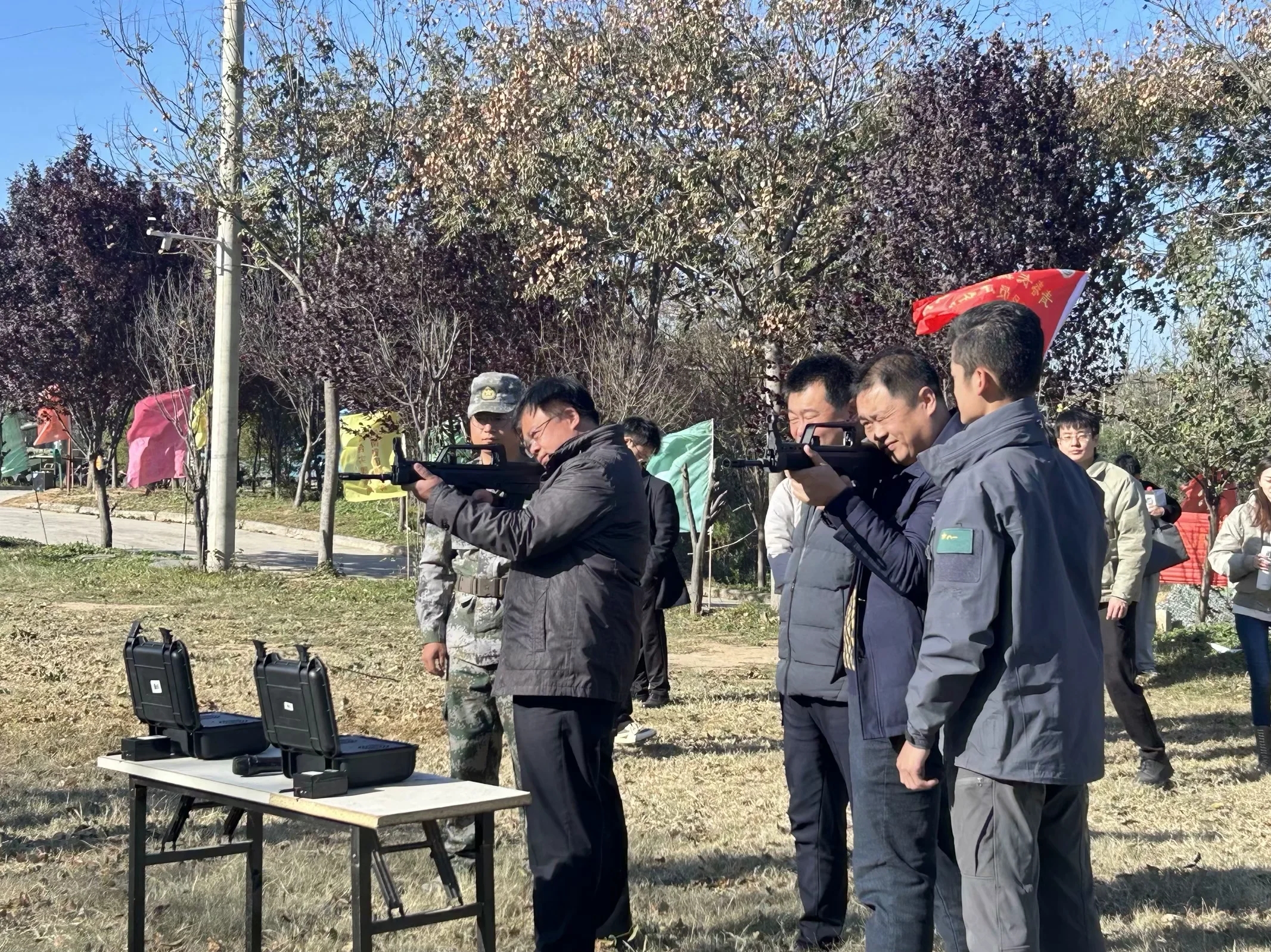 本次沙龙活动分为参观体验和经验研讨两个阶段。在武器装备参观和军事科目体验环节,参与活动的各位老师在教官的讲解和演示中,了解武器装备的发展历程、现状和未来趋势,与武器装备进行了“亲密接触”,并亲身体验了靶场射击、投掷手雷、模拟火箭弹等项目。在国防教育研讨环节,来自食品科学技术太阳城App
