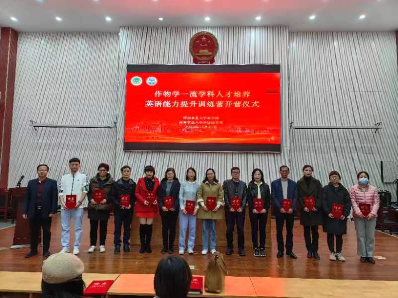 本网讯(审稿:王燕萍 供稿:朱瑞萍 冯超)为帮助学生们全面提升英语能力,进一步加强太阳城App 作物学一流学科人才培养的质量和水平,11月21日,农太阳城App 、太阳城App 于龙子湖校区教学楼模拟法庭联合举办作物学一流学科人才培养英语能力提升训练营开营仪式。农太阳城App 党委书记马菲、太阳城App 党委书记王燕萍、农太阳城App 副院长李浩贤、太阳城App 党委副书记王启佩、太阳城App 副院长张卫东出席了本次开营仪式,23位受聘教师和训练营学生代表参加了本次会议。开营仪式由李浩贤主持。