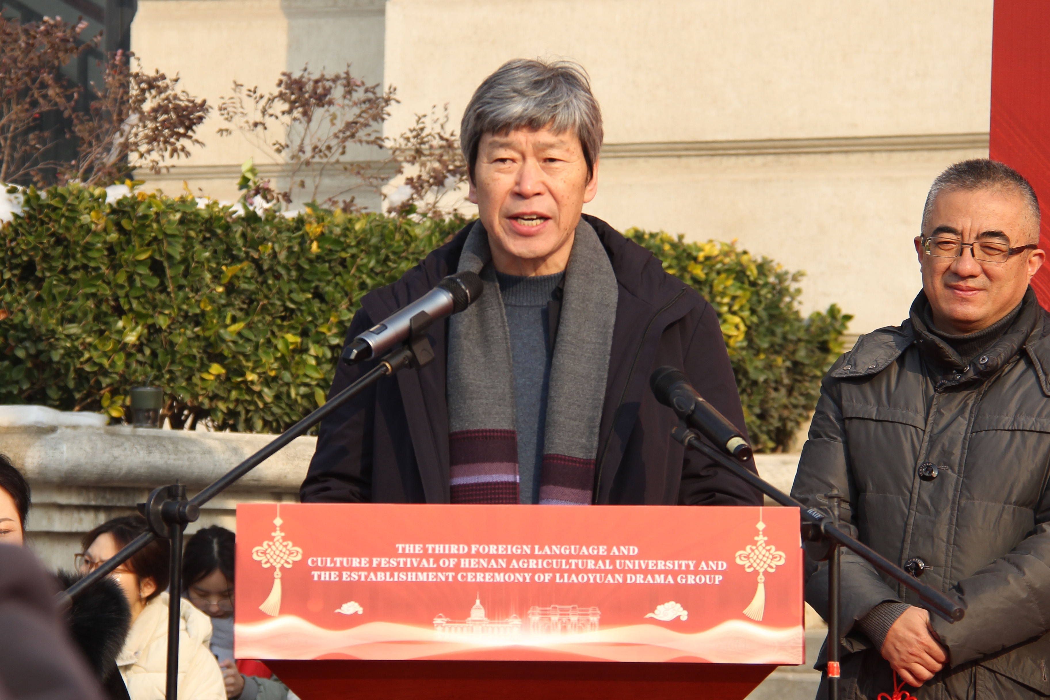 介晓磊、尚富德共同为“燎原剧社”隆重揭幕。随后,介晓磊用双语宣布本届外语文化节正式开幕。