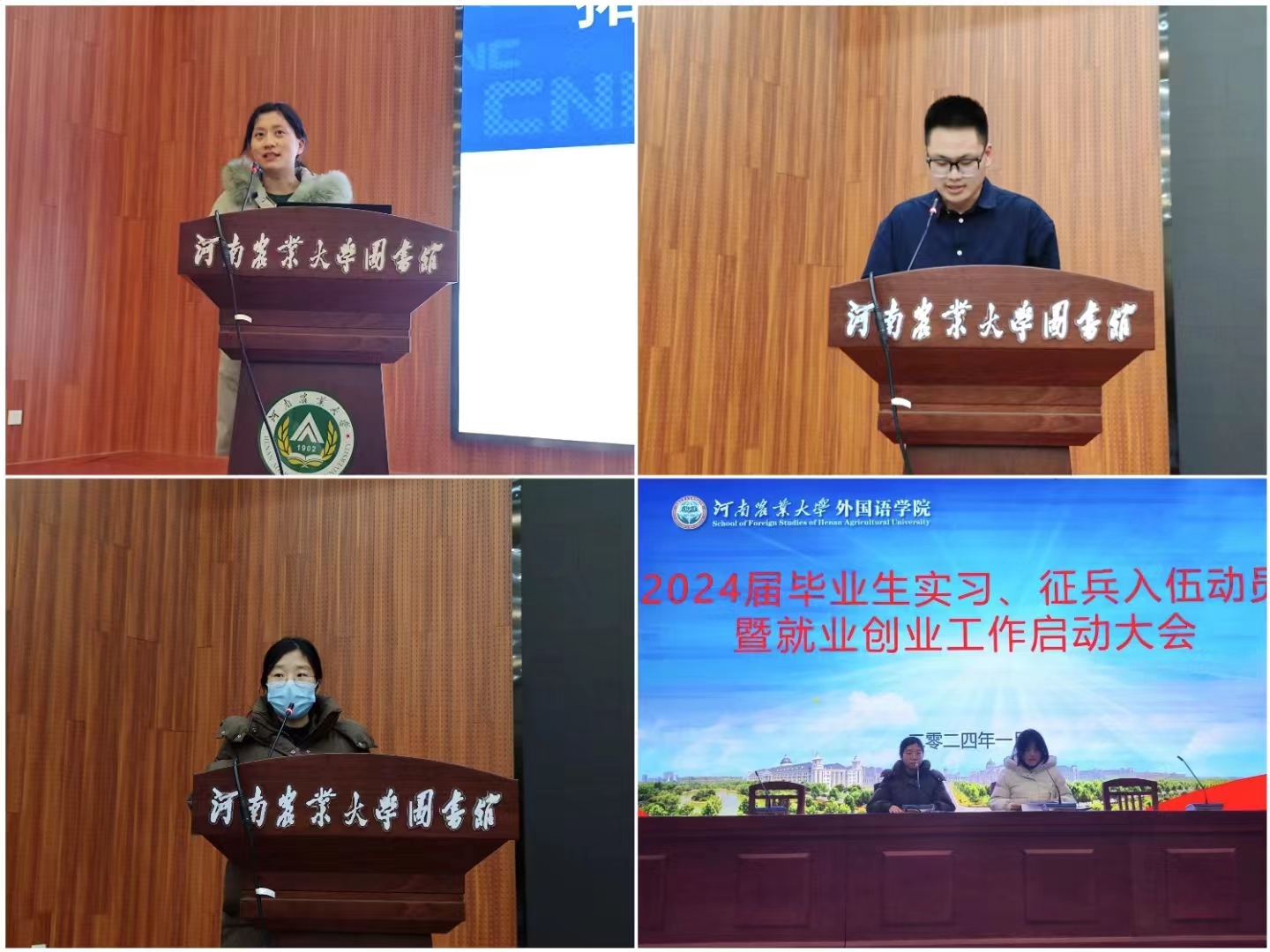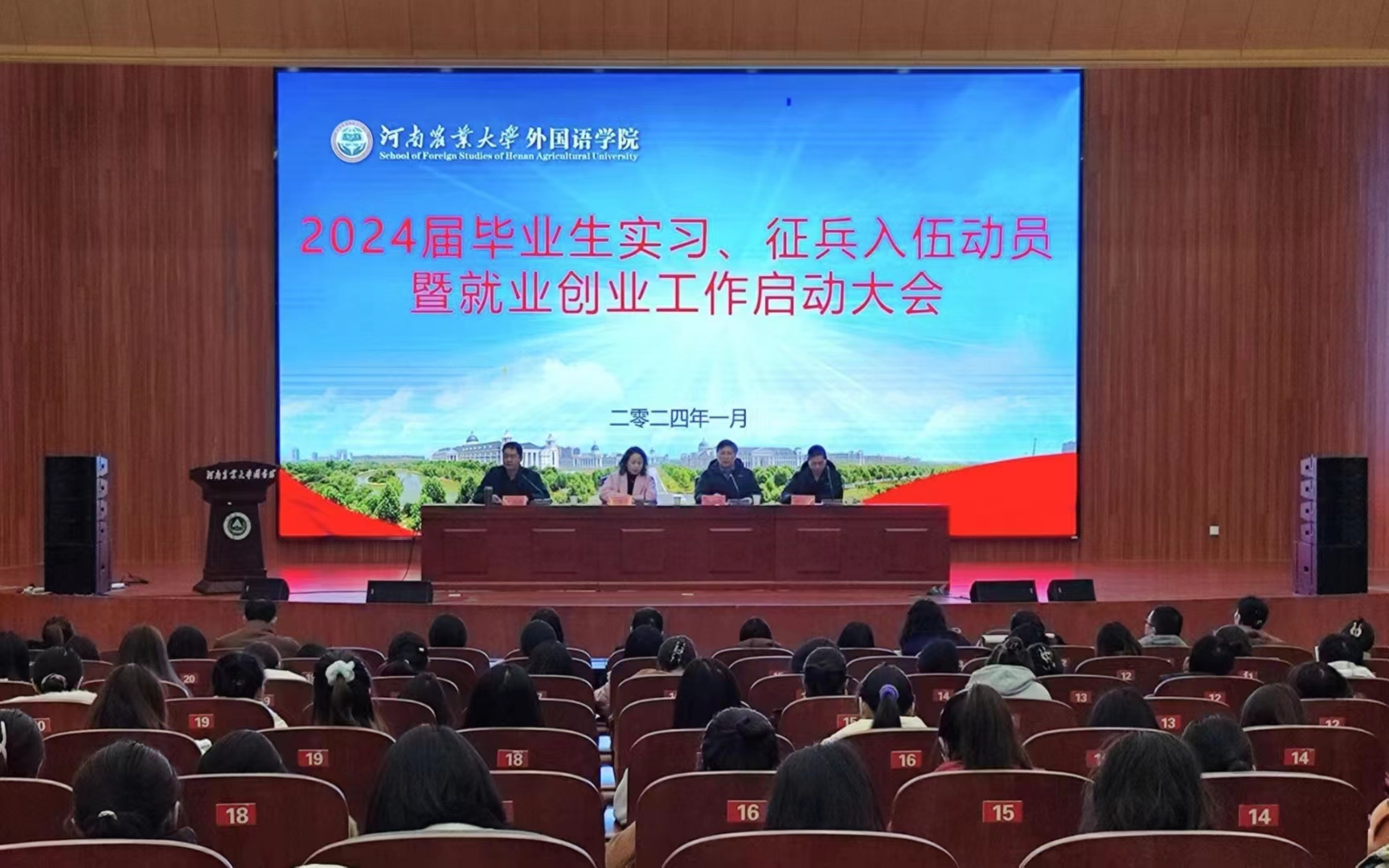 于龙子湖校区图书馆报告厅召开2024届毕业生实习、征兵入伍动员暨就业创业工作启动大会,院党委书记王燕萍、院长张俊杰携太阳城App