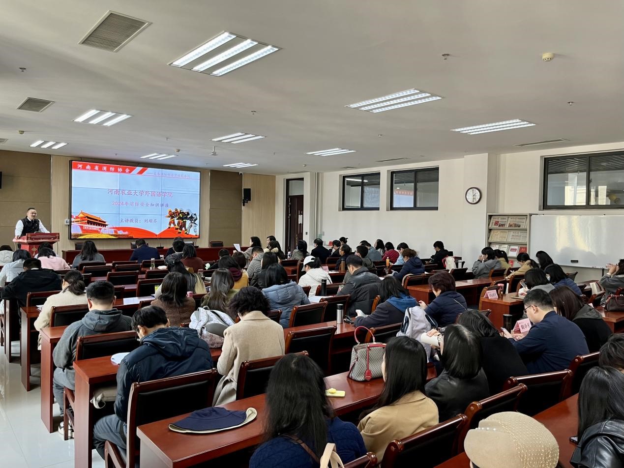 邀请河南省消防协会义务消防科普宣传服务队刘顺齐教员作消防安全知识专题讲座,并进行了消防应急演练。会议由副院长张卫东主持,全体教职工参加。
