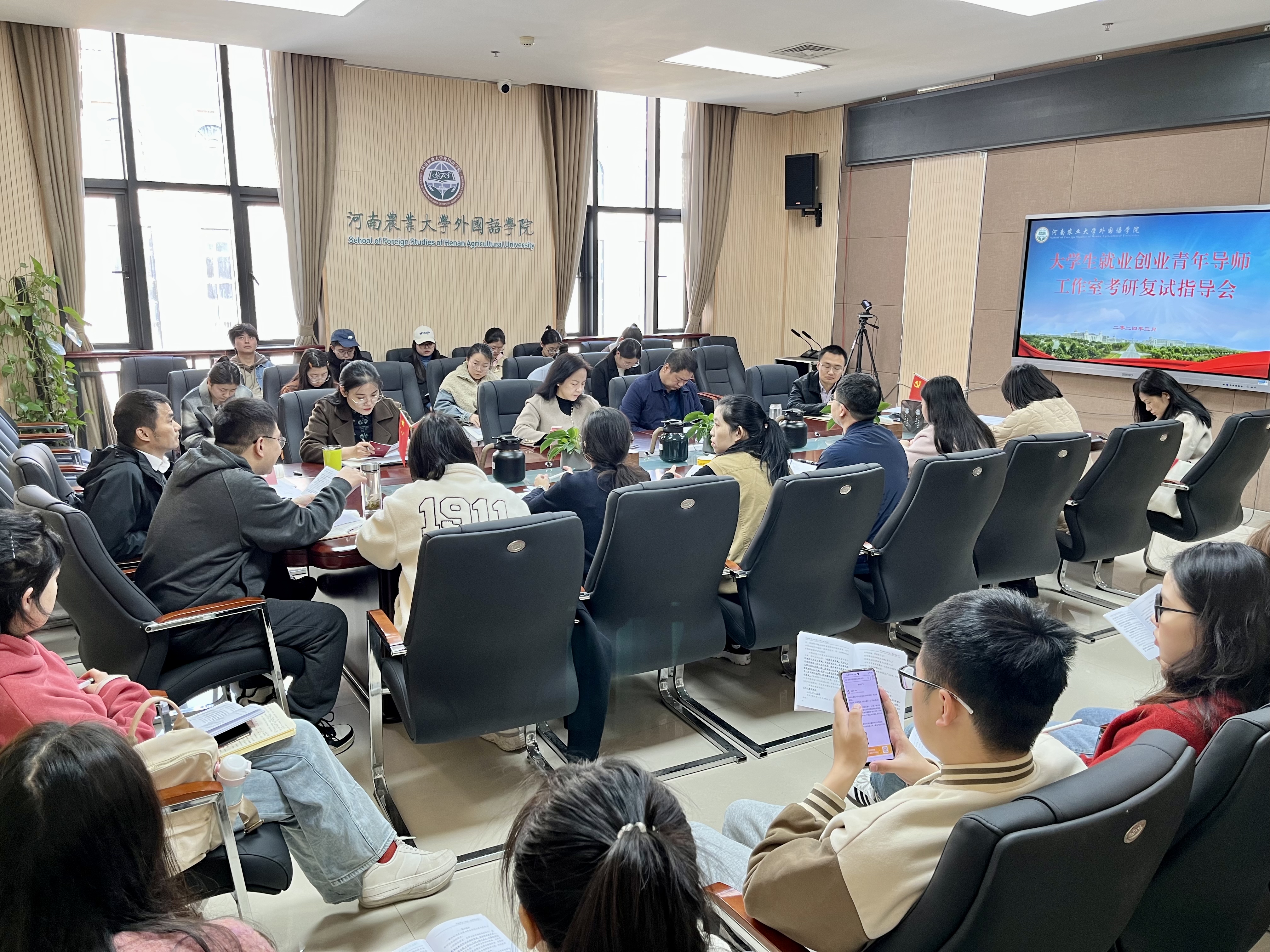 大学生就业创业青年导师工作室指导教师和2024届考研学生参加会议。会议由院党委副书记王启佩主持。