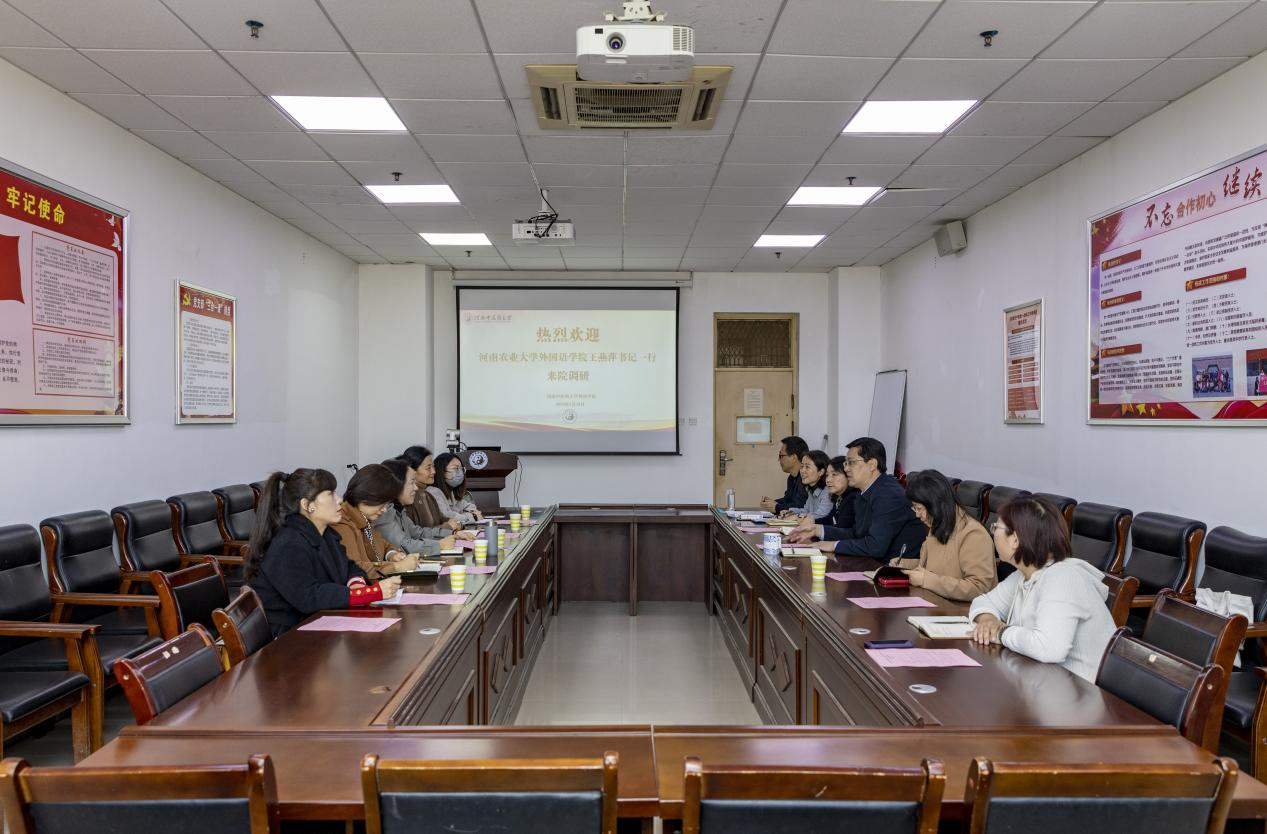 王燕萍对河南中医药大学外语太阳城App 的热情接洽表示由衷感谢,并简要介绍了太阳城App 党建工作的开展情况,重点就“外语赤子心 党旗添光彩”党建品牌建设、“互联网+外语+党建”的特色工作开展情况和助推太阳城App “农耕文化”传播的“语侬”系列特色活动等进行了交流与分享。