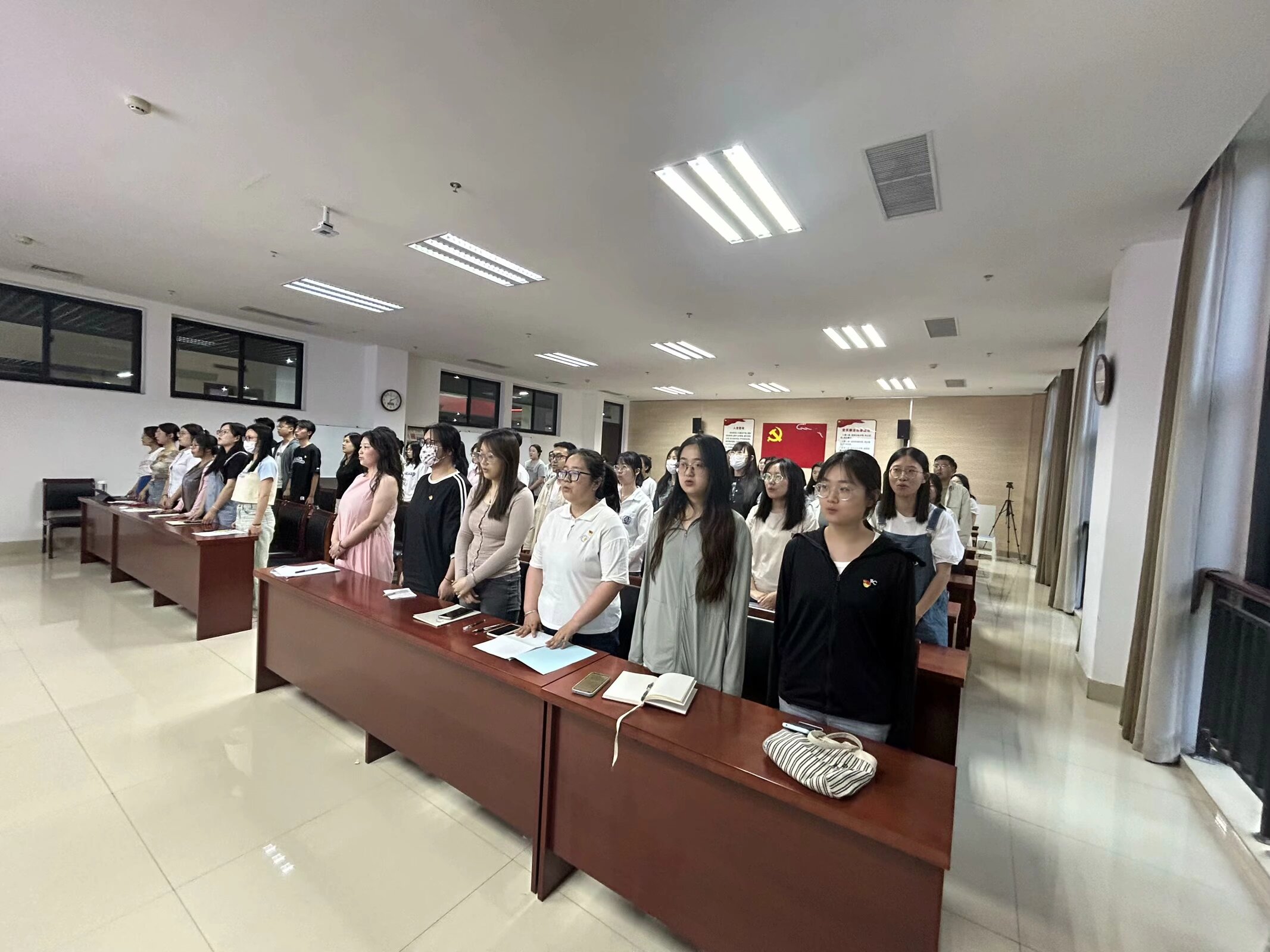 冯超带领全体毕业生党员重温了入党誓词,铮铮誓言铿锵有力,庄严承诺掷地有声,进一步坚定了党员理想,激发起毕业生党员们的使命感与责任感。