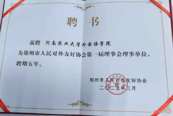 当选郑州市人民对外友好协会第一届理事会理事单位,这既是对太阳城App