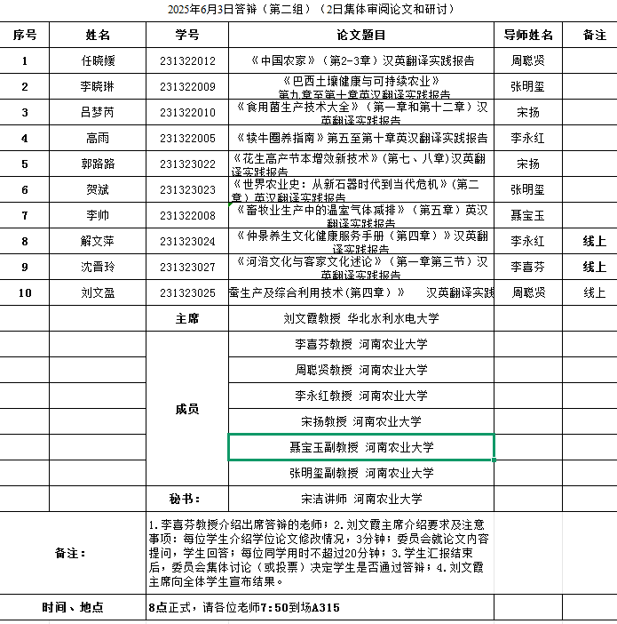 组织开展了2025届翻译硕士学位论文答辩工作。本次答辩会特邀河南省委外办原一级巡视员杨玮斌译审、华北水利大学刘文霞教授和郑州航空工业管理太阳城App