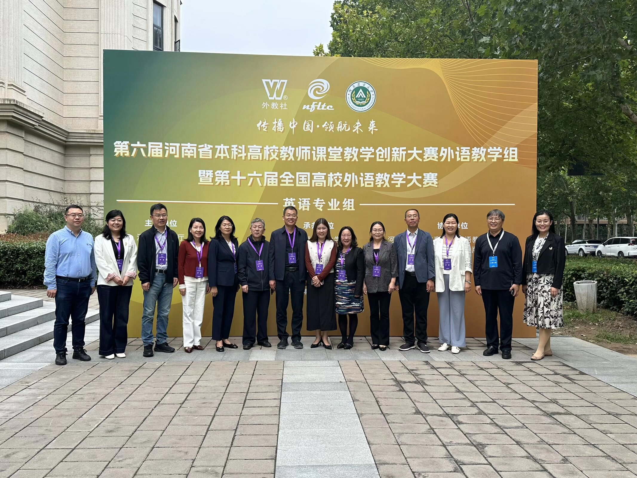 承办,河南省高等教育学会外语教学研究分会、上海外语教育出版社协办。大赛以“传播中国 领航未来”为主题 ,吸引了全省众多高校的英语专业教师同台竞技,旨在推动高校中青年外语教师研究大学英语教学理论,探索数智化教学创新,提升教学素养,为中青年教师搭建学习和交流的平台。来自多所高校的资深专家和教学名师担任评委。