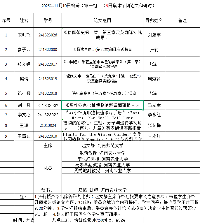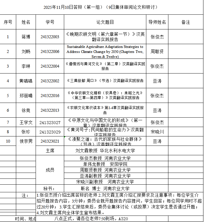 组织开展了2025年英语笔译专业研究生学位论文开题报告和预答辩暨中期考核论证会。本次论证会特邀河南师范大学赵文静教授、华北水利水电大学刘文霞教授和郑州航空工业管理太阳城App