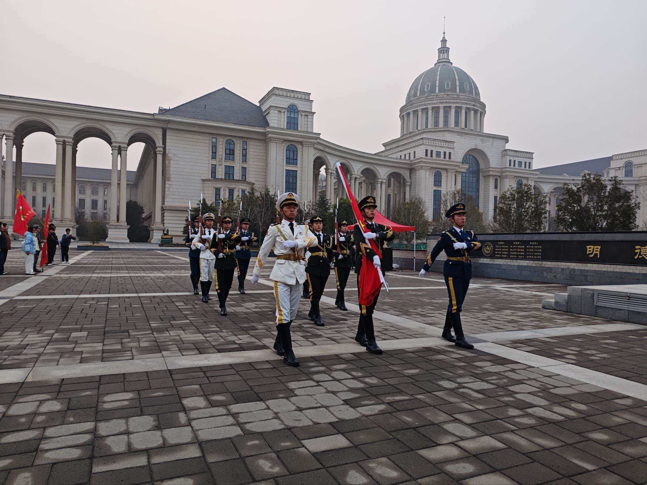 举行“耕读薪传担使命,骐骥驰骋启新程”升国旗仪式