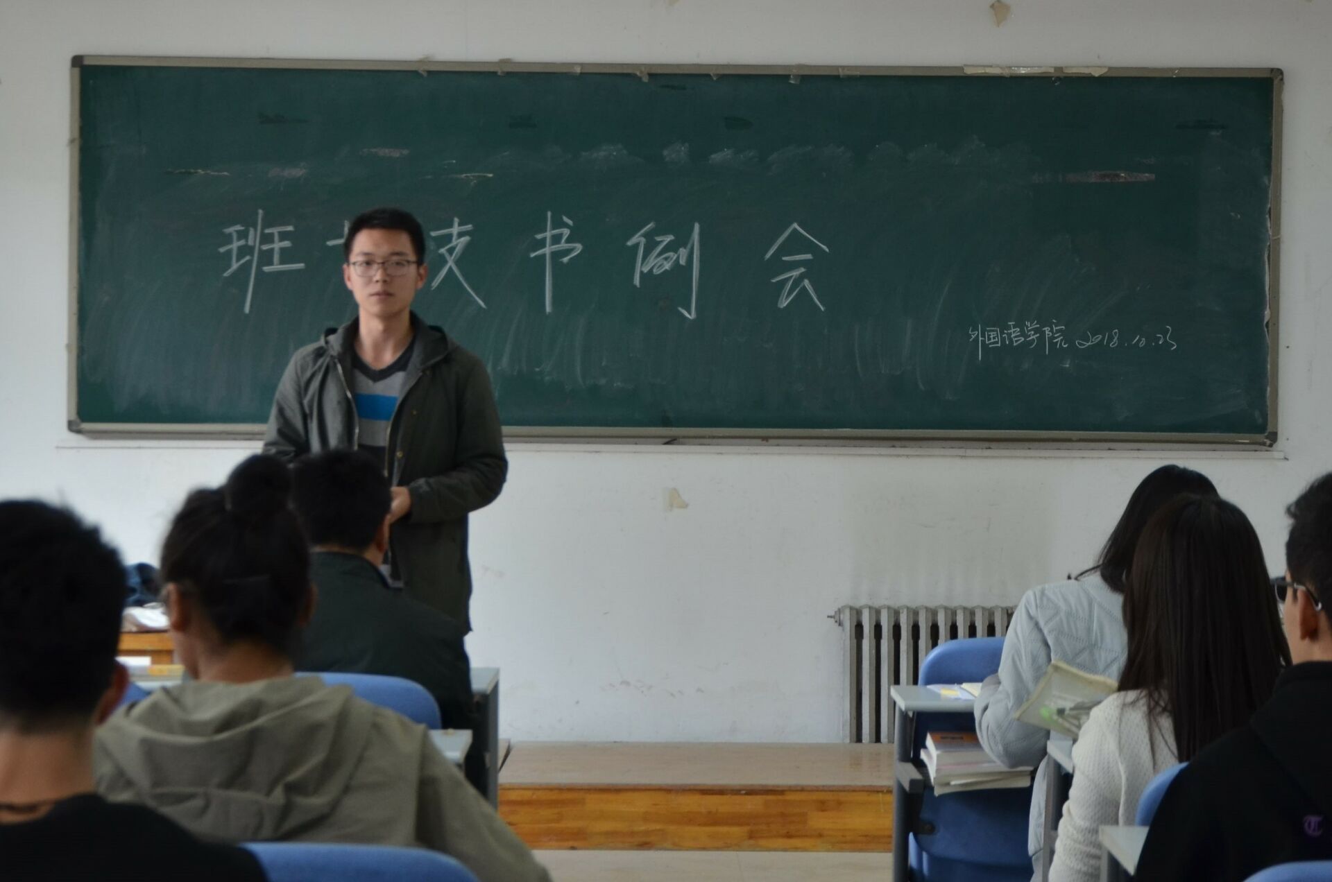 会议伊始,团办主任楚聪指出各班要认真落实和开展好团日活动,并呼吁各班长支书重视个人荣誉分类制度,积极推动各项荣誉评选活动的顺利开展。随后,各主要学生干部就院运动会工作、反邪教法制知识竞赛、心理报表完成上交情况等工作进行了详细说明。随后,王颖强调各班要重视精神文明建设,尤其要明晰相关安全条例,提高安全教育意识,遵守住宿管理规定。最后,李沛提议就学生工作实施“加分制度”,以调动各学生干部的工作积极性。李沛呼吁各班班长支书积极动员班级同学,围绕“班风、学风、社会工作、文化宣传、安全稳定”等多个方面完善班团建设。