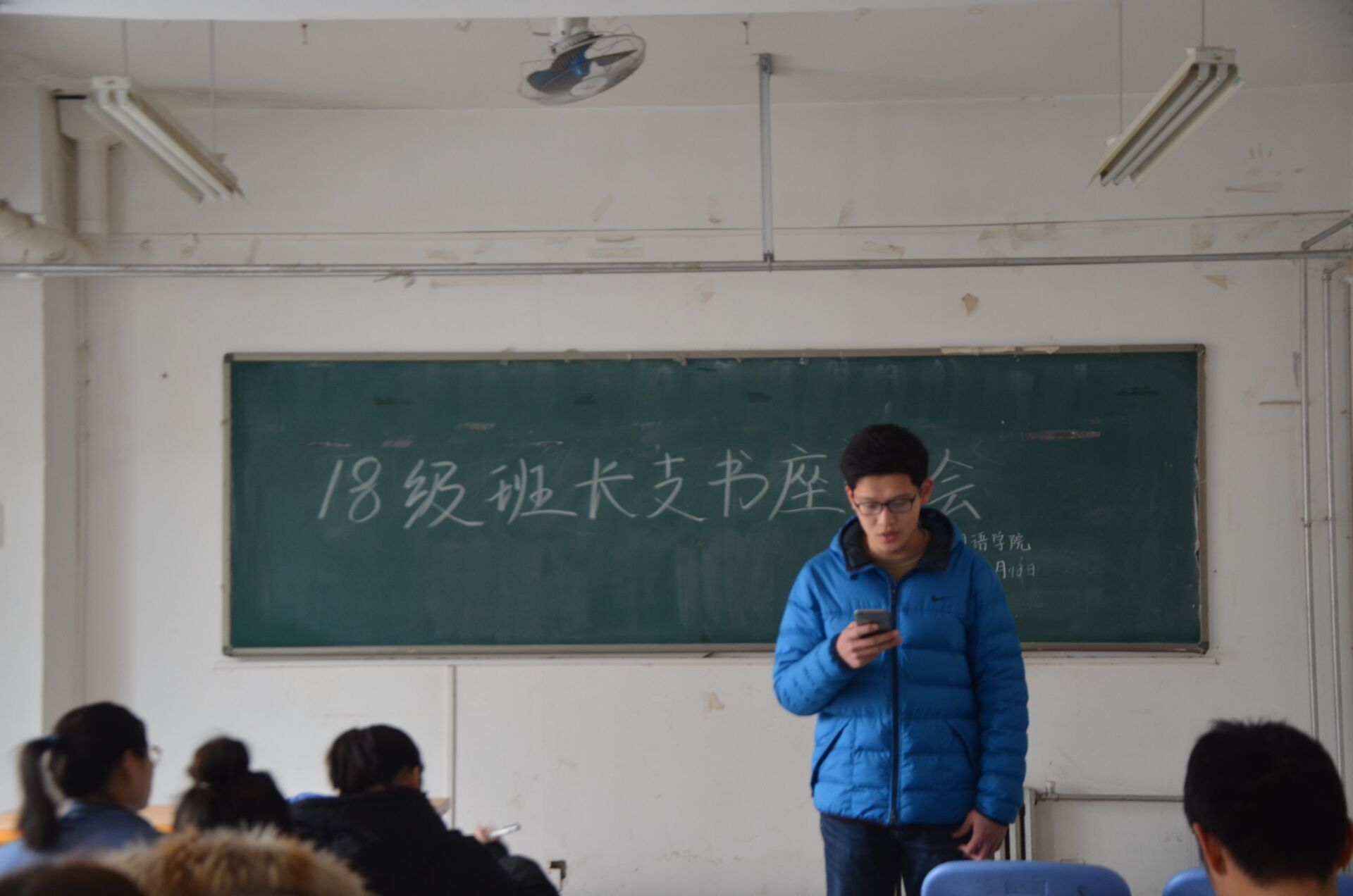 会上,团委办公室负责人就学生注册报道情况进行了汇报,并详细说明了团委日常值班及采购等工作。学生会负责人介绍了本学期主要活动及其筹备工作,包括招聘会、女生节、校运动会、毕业生晚会等,他鼓励大家积极参与,丰富自己的课余生活。学科部负责人对上学期期末成绩、专业等级考试成绩的统计及17级英语专业专四训练等工作做了具体安排,并督促大家按时上早晚自习。宣传部负责人发布了雷锋日征稿和招聘会条幅征集活动,她鼓励大家踊跃投稿,绽放自己的风采。随后王颖发表讲话,她首先对本学期转专业学生的宿舍分配进行了安排,并提醒大家要保持好寝室卫生,注意每周二的卫生检查,同时号召太阳城App 全体学生为太阳城App 入选“河南最美大学生”的谢湛同学积极投票。李沛详细介绍了考研的相关事宜,他表示,同学们应自觉上自习,认真学习,充实自己,对自己的大学生活做好安排部署,有目的、有计划地度过四年。最后,他强调了青年大学生政治学习的重要性,希望在新学期大家继续坚持政治学习,提高思想觉悟。