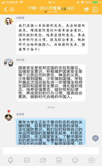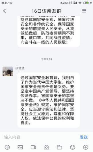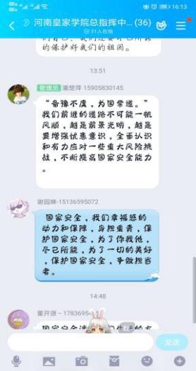 利用官方微博、官方微信公众号等宣传平台,发布推送国家安全知识和相关法律法规内容,营造了浓厚的安全教育氛围。同学们纷纷表示,作为新时代的团员青年,将以身作则,自觉遵守相关法律规定,不做有危害祖国安全、荣誉和利益的行为,竭尽全力维护国家安全。