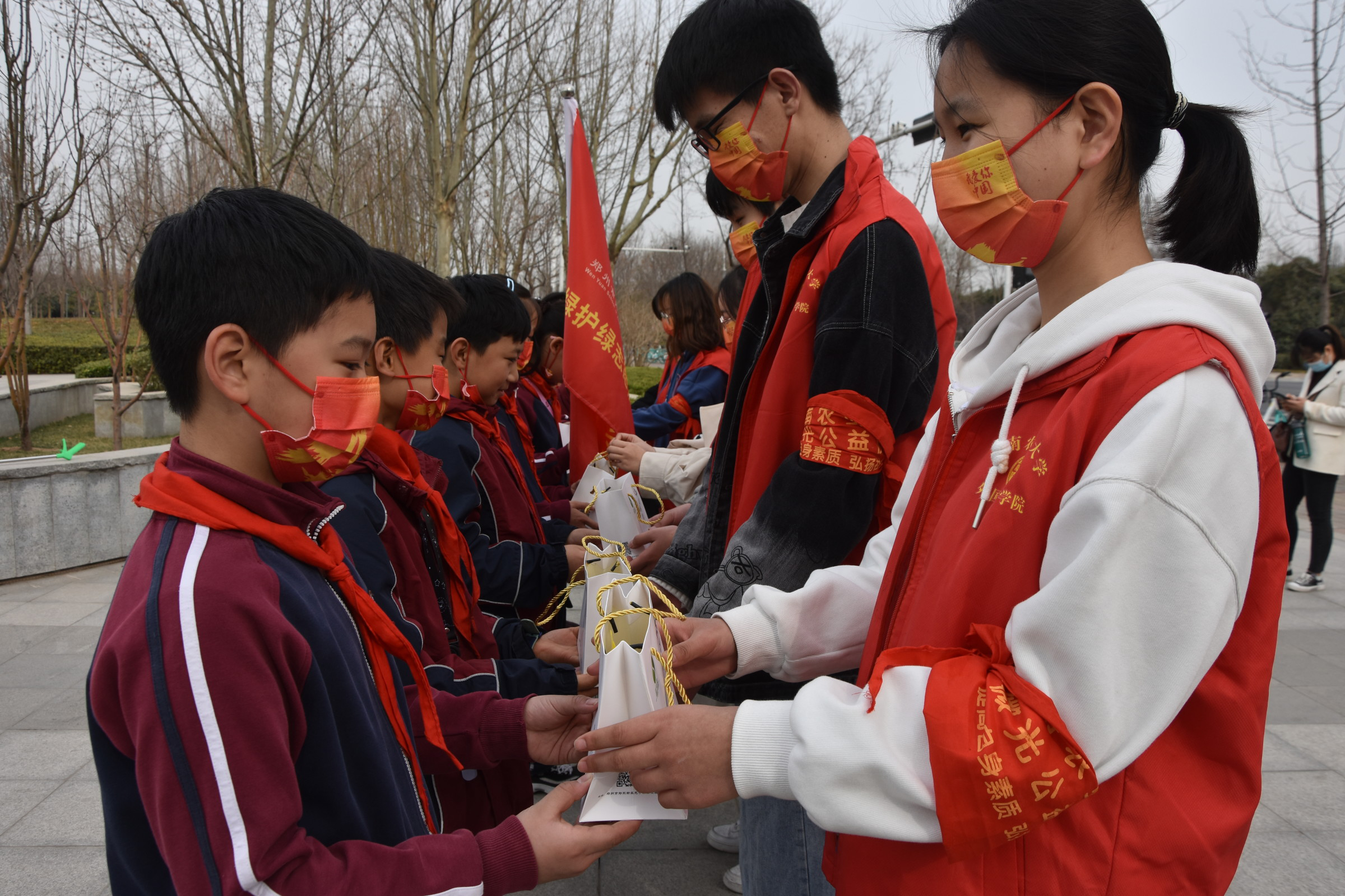 本网讯 (审稿:陈桃 供稿:黄湘)为弘扬雷锋精神,传承中华民族传统美德,传播志愿服务理念,太阳城App 微光公益协会携手郑州市郑东新区文苑太阳城App 四(2)班的小朋友于3月6日上午在郑东新区龙子湖湿地公园开展“大手牵小手,护绿龙子湖”活动,带队老师和微光公益协会志愿者参与此次活动。