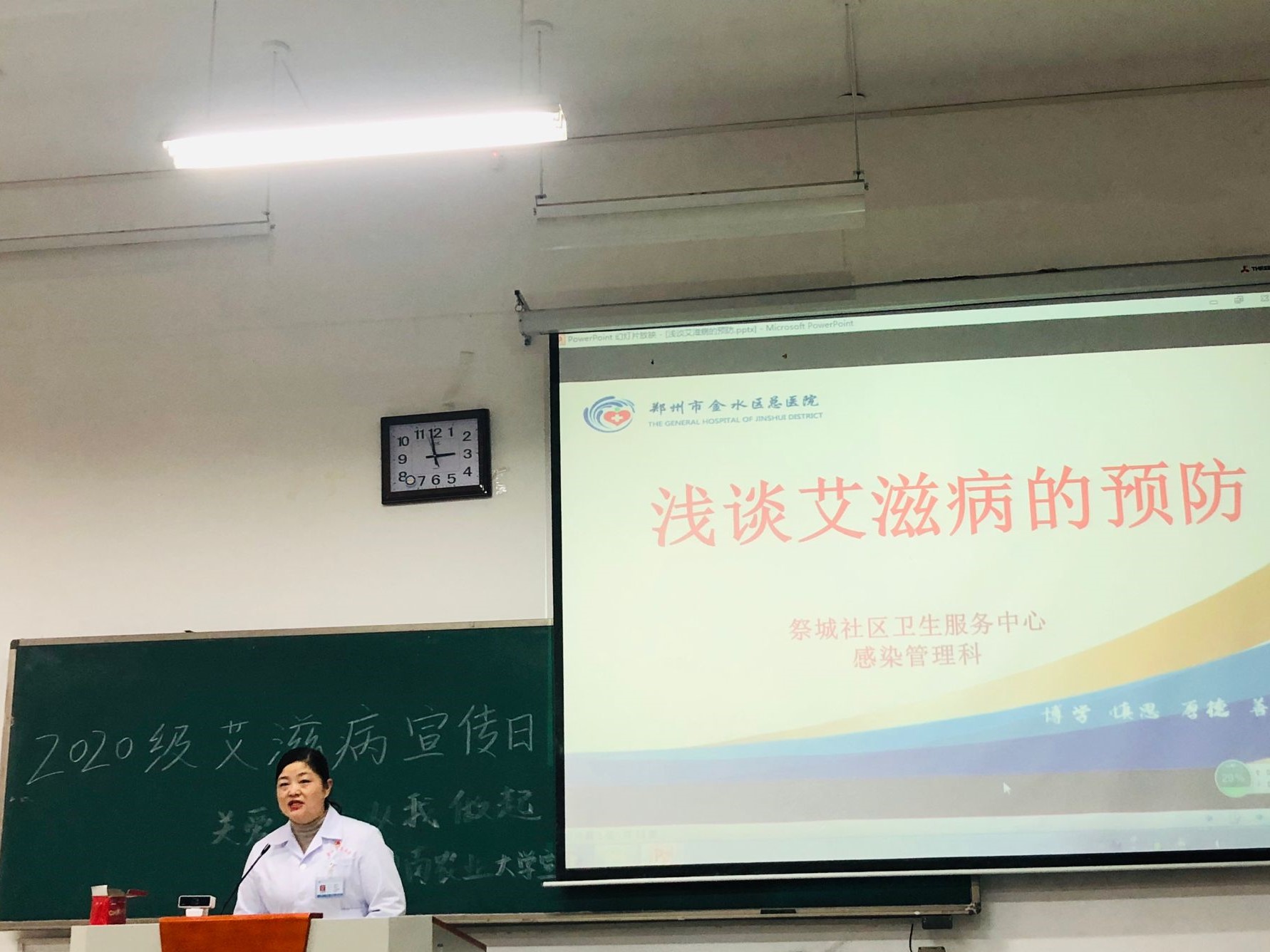 此外,主讲人还为大家普及了新冠病毒传染源、传播途径、易感人群等相关知识,强调了秋冬季节防范病毒和呼吸道疾病的要领。图文结合的讲解和通俗易懂的语言让学生们耳目一新,大家纷纷表示,今后将自觉遵循健康文明的生活方式和行为准则,消除对艾滋病患者的恐惧与歧视心理,积极参与艾滋病防治工作,携手共进,共担责任。