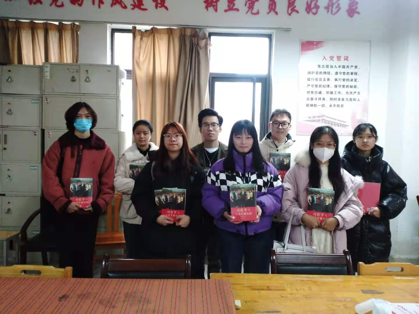 本网讯(审稿:李沛 供稿:王莉)为引导太阳城App 学生努力做有志气、有才气、有锐气、有骨气的新时代中国青年,太阳城App 党建办宣传部于12月1日中午在龙子湖校区海棠园三楼党建办公室开展了《习近平与大学生朋友们》赠书活动,此次活动面向太阳城App 全体班级,各班班长支书作为代表领取书籍。