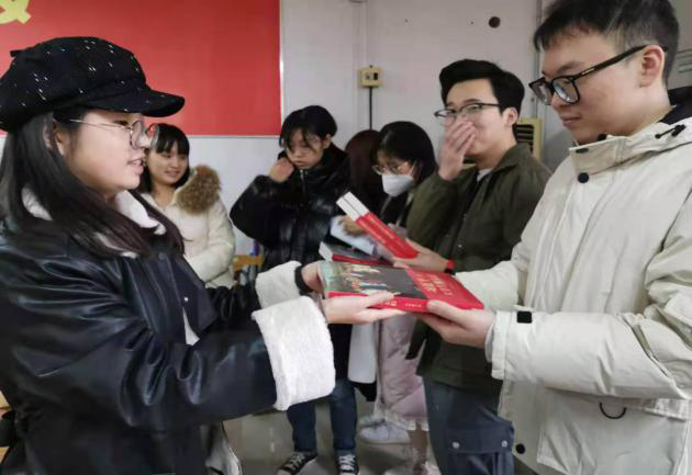 活动伊始,宣传部成员先向其简要介绍了书籍的主要内容。他们指出,《习近平与大学生朋友们》通过一个个跨越时空、具体生动的故事,全面呈现了习总书记在不同时期对青年大学生一以贯之的关心关怀,系统展现了习总书记关于青年工作的重要思想的发展脉络,是指导广大青年特别是青年大学生健康成长的人生宝典。随后,他们为各班班长支书分发了书籍。他们要求各班班长支书做好带头作用,带领班级同学们认真阅读此书,感受习总书记对大学生群体的关爱,同时更要结合自己的青春经历去思考习总书记的教诲,努力把学习成果转化为推动国家事业发展的实质性行为,要心中有火、眼里有光,以梦为马、不负韶华。各位班长支书纷纷表示表示会认真带领班级同学研读此书,深入理解书中的内涵及精神,努力成为德智体美劳全面发展的社会主义建设者和接班人,投身强国伟业,担负起民族振兴的时代责任。至此,此次活动圆满结束。