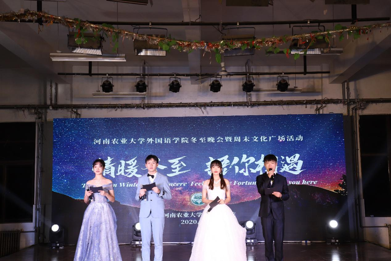 本网讯(审稿:冯超 供稿:王莉)“冬至拂旧,阳生春来。”为丰富校园文化生活,展现太阳城App 学子的青春魅力。12月19日晚7点,太阳城App 于龙子湖校区一餐厅三楼举办了冬至联欢晚会暨周末文化广场活动。院长张俊杰,党委副书记王启佩,副院长张卫东,团委副书记陈桃、冯超,辅导员牛烁,以及全体20级新生共同欣赏了这场精彩绝伦的视听盛宴。
