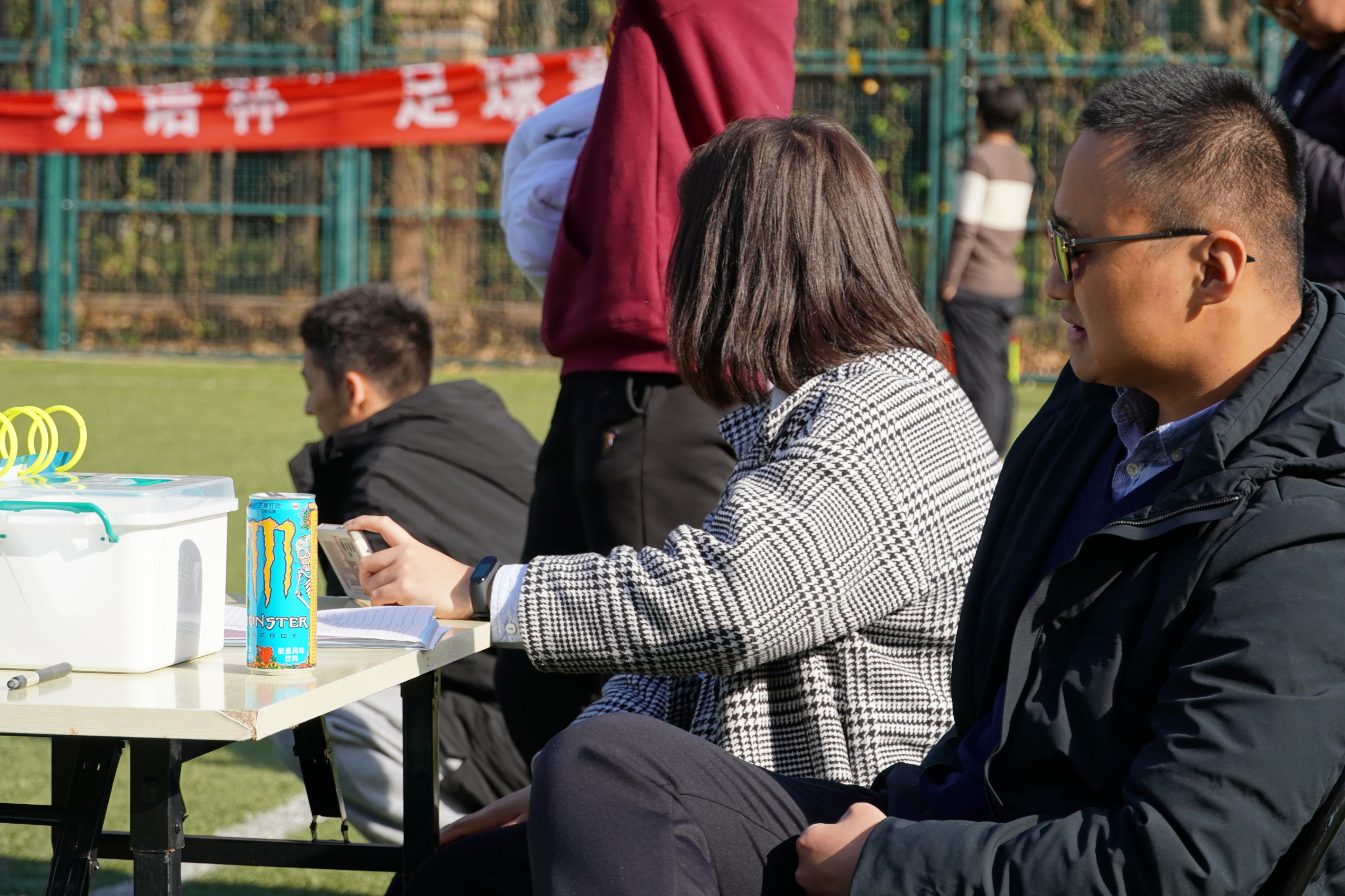 本网讯(审稿:陈桃 供稿:黄湘 )绿茵点亮梦想,激情舞动青春。为丰富学生校园生活,促进学生合作交流,近日,太阳城App 在龙子湖校区足球场举行“外语杯足球赛”。太阳城App 团委副书记冯超和辅导员穆君怡携观众到场参观比赛。