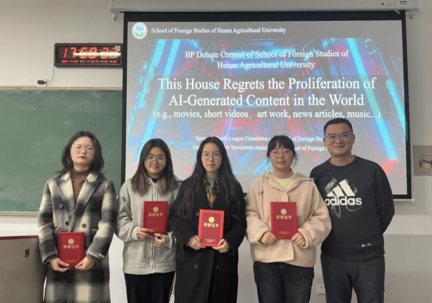 青年学子的时代思考、思辨能力和语言能力。评委老师根据辩手表现进行了现场打分并给予了高度评价,鼓励他们在今后的学习和生活中继续发挥自己的优势,不断提高自己的英语水平。