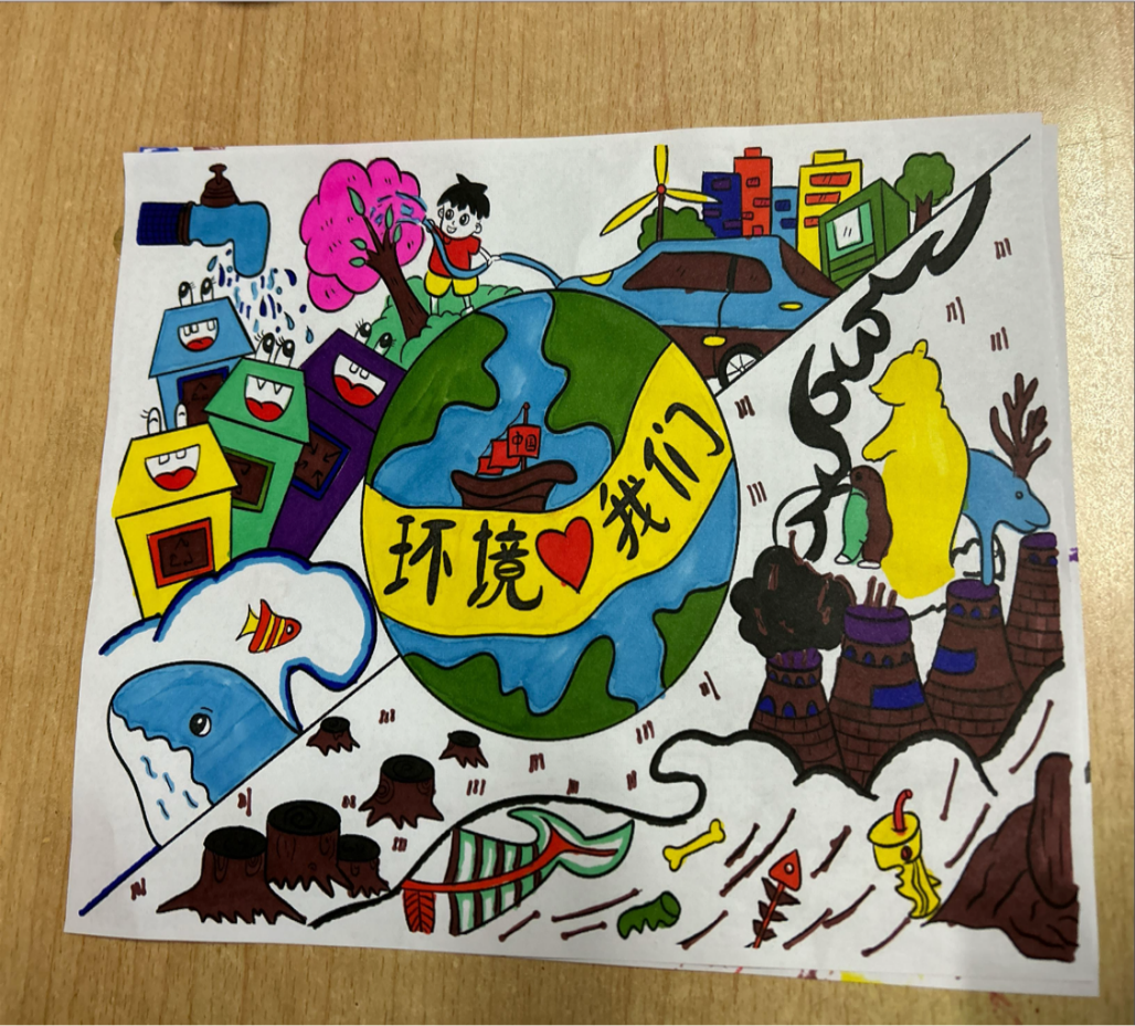 在活动期间,同学们便投入到紧张而兴奋的创作中。有的同学聚精会神地在纸上勾勒出精美的图案,用细腻的笔触描绘出蓝天、碧水、青山等自然元素,展现出对生态文明的美好向往;有的同学则专注地书写着文字内容,从生态文明的定义、重要性到如何在日常生活中践行环保理念,他们用简洁明了、生动有趣的话语传递着自己的理解;还有的同学将绘画与文字巧妙结合,创作出一幅幅内容丰富、形式多样的手抄报。使更多的同学们感受到了保护生态的磅礴力量。
