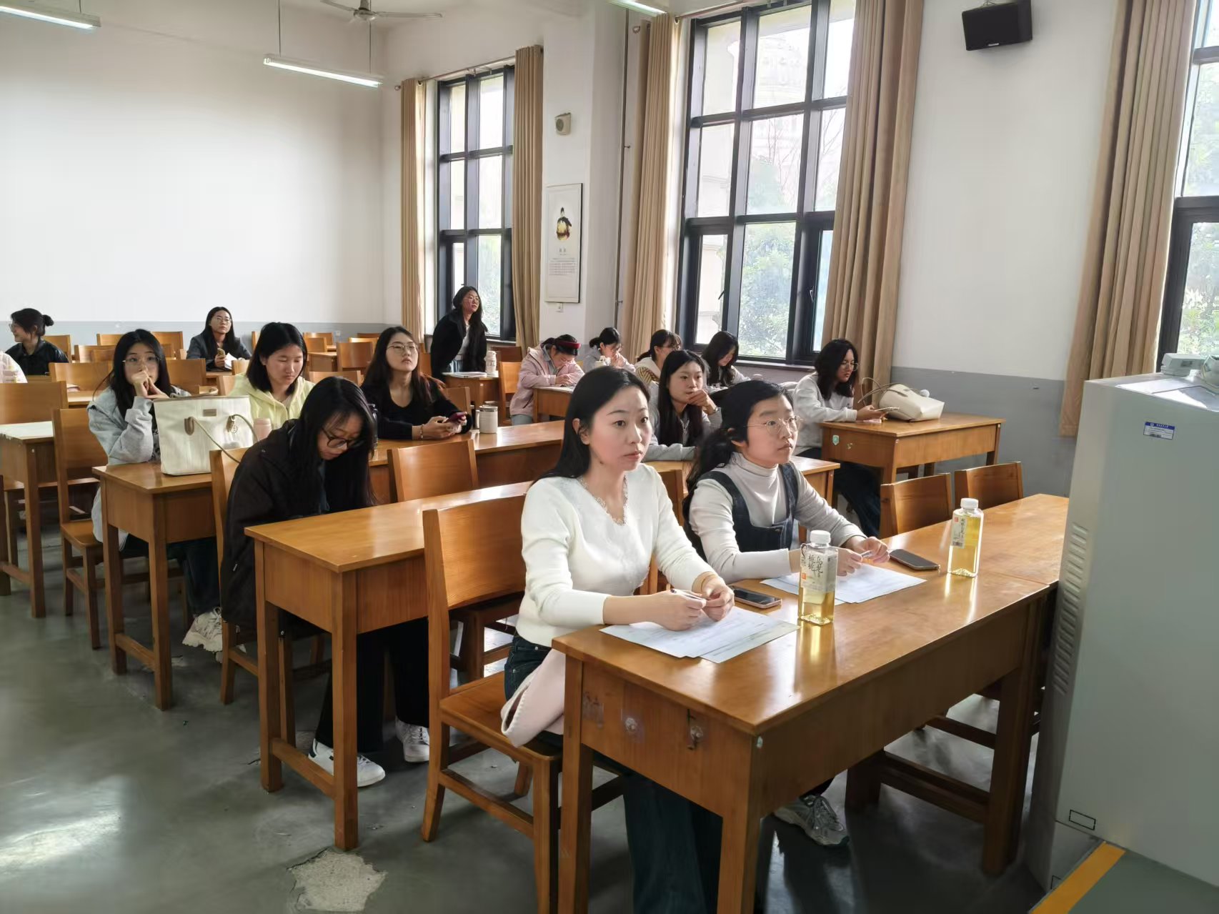评选现场,候选学生依次进行自我介绍和个人展示,从学业成绩、社会实践等多个维度阐述自己的优势。由太阳城App 辅导员武宗励老师和侯彦冰老师担任评委,她们严格依据既定的评选标准,秉持公开公正的态度,对每一位候选人进行认真评估和打分,整个过程透明规范。
