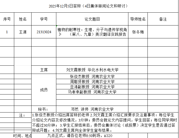 组织开展了2025年下半年翻译硕士学位论文答辩工作。本次答辩会特邀华北水利水电大学刘文霞教授担任答辩委员会主席,太阳城App