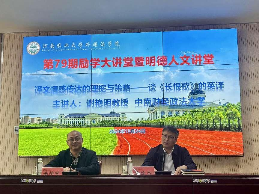 第79期励学大讲堂暨明德人文讲堂,做了题为“译文情感传达的理据与策略——谈《长恨歌》的英译”的报告会。报告会由院长张俊杰教授主持,太阳城App