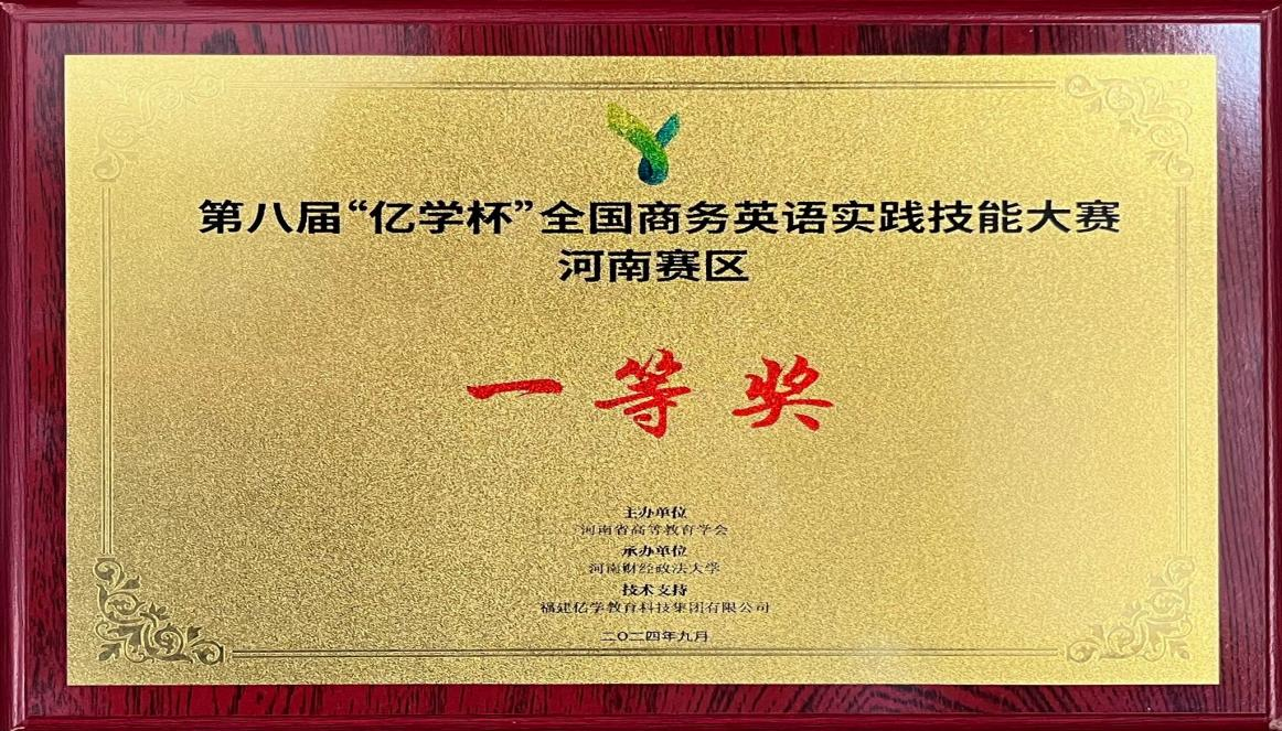 参赛队伍“上亿队”以扎实的商务英语知识、新颖的商务策划方案和突出的英语口语表现在河南省34支晋级队伍中脱颖而出,再次荣获河南省一等奖,入围国赛。