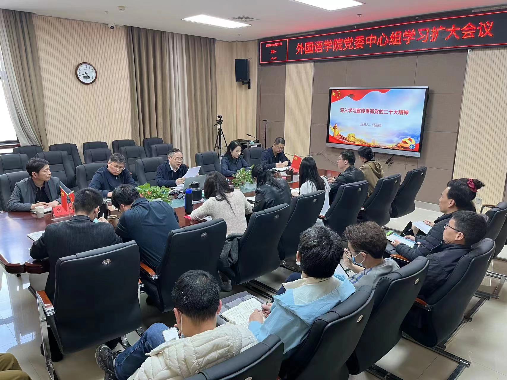 本网讯(审稿:王启佩 供稿:冯超)为深入学习贯彻党的二十大精神,引导全体师生员工把思想和行动统一到党的二十大精神上来,将力量凝聚到党的二十大确定的各项任务上来。3月27日下午,外国太阳城App